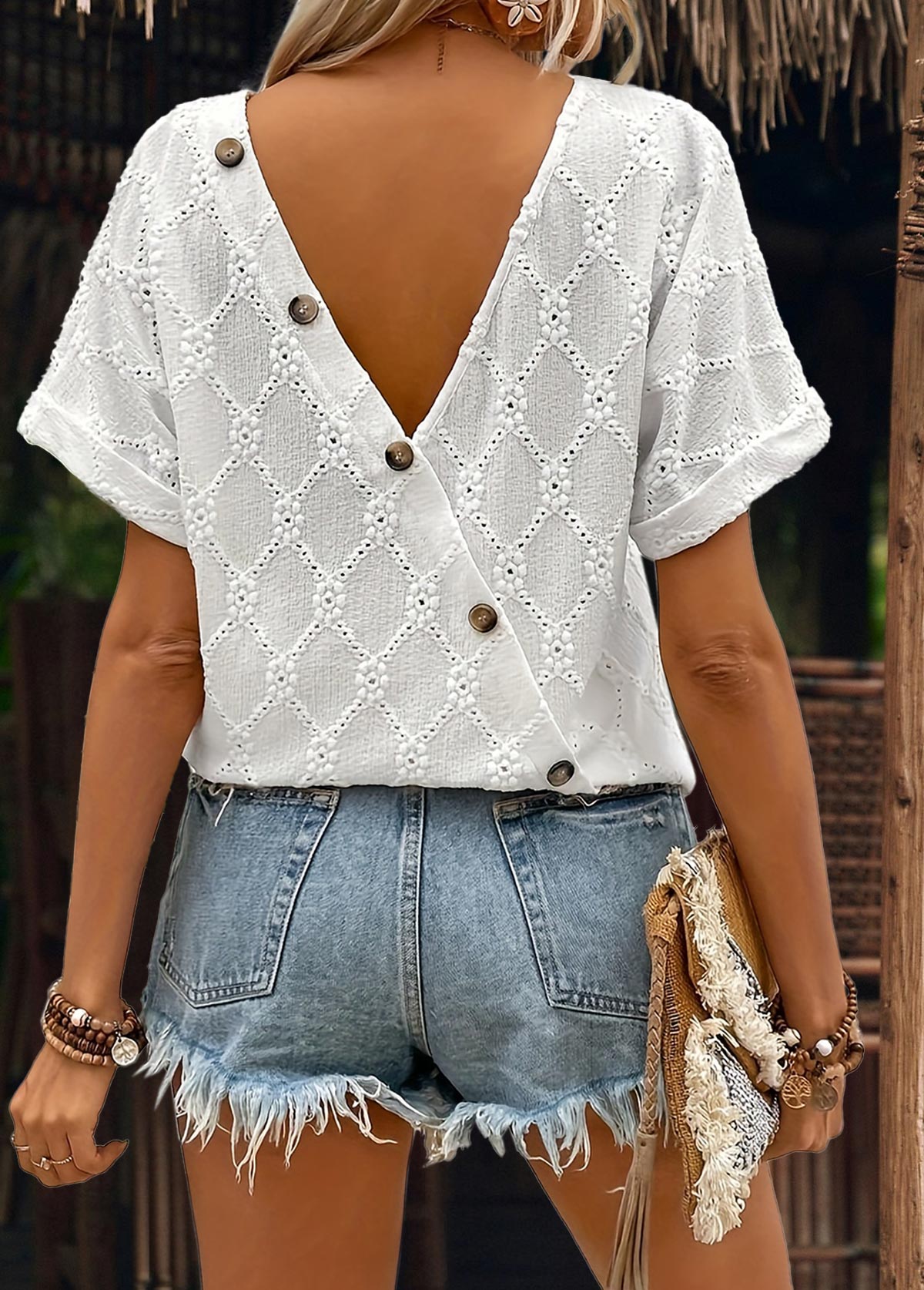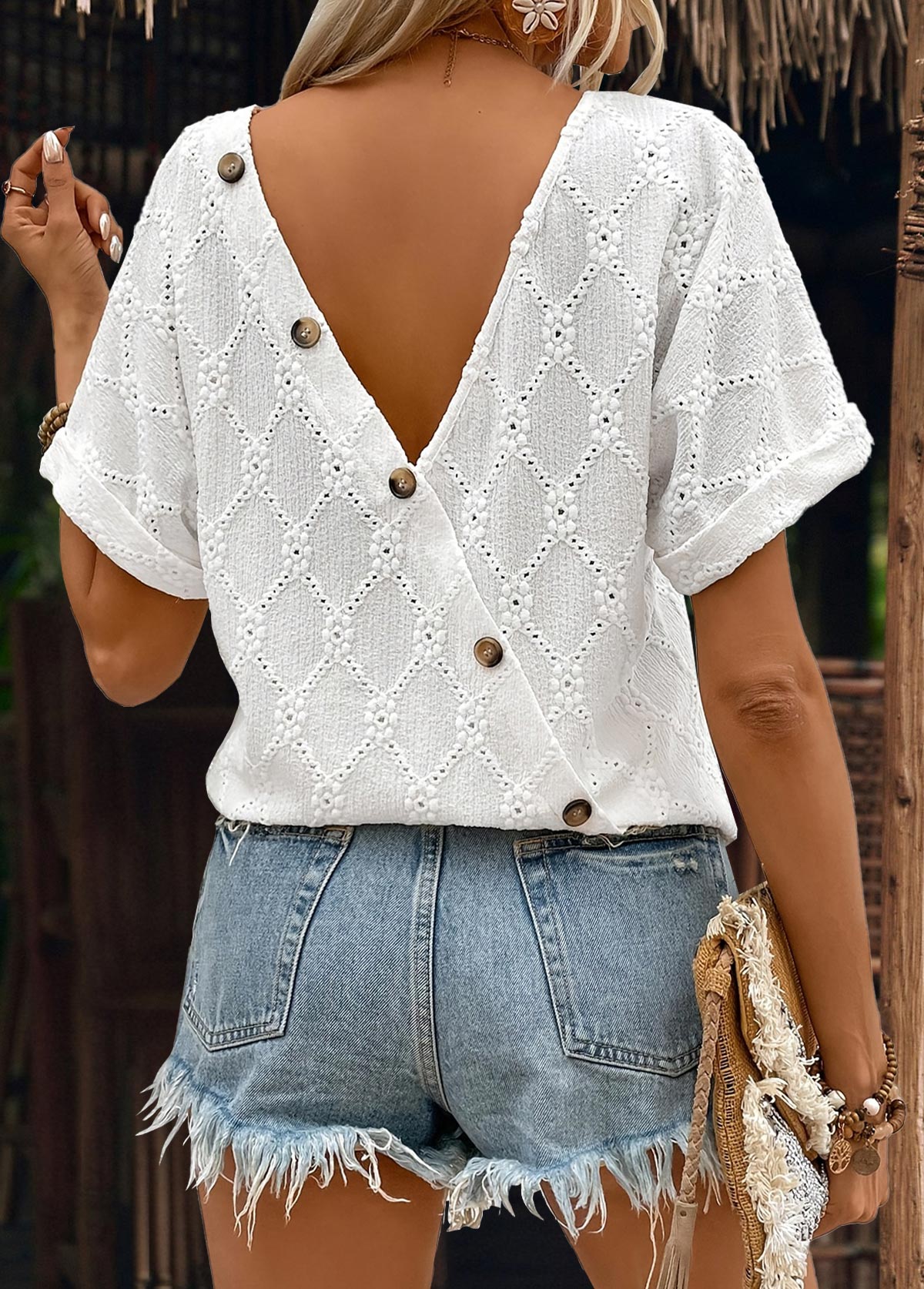 SALE Raw White Short Sleeve Scoop Neck T Shirt Rosewe®