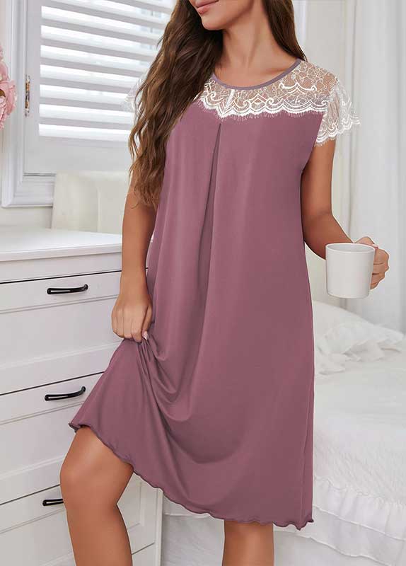 SALE Round Neck Dusty Purple Short Sleeve Nightdress Rosewe®