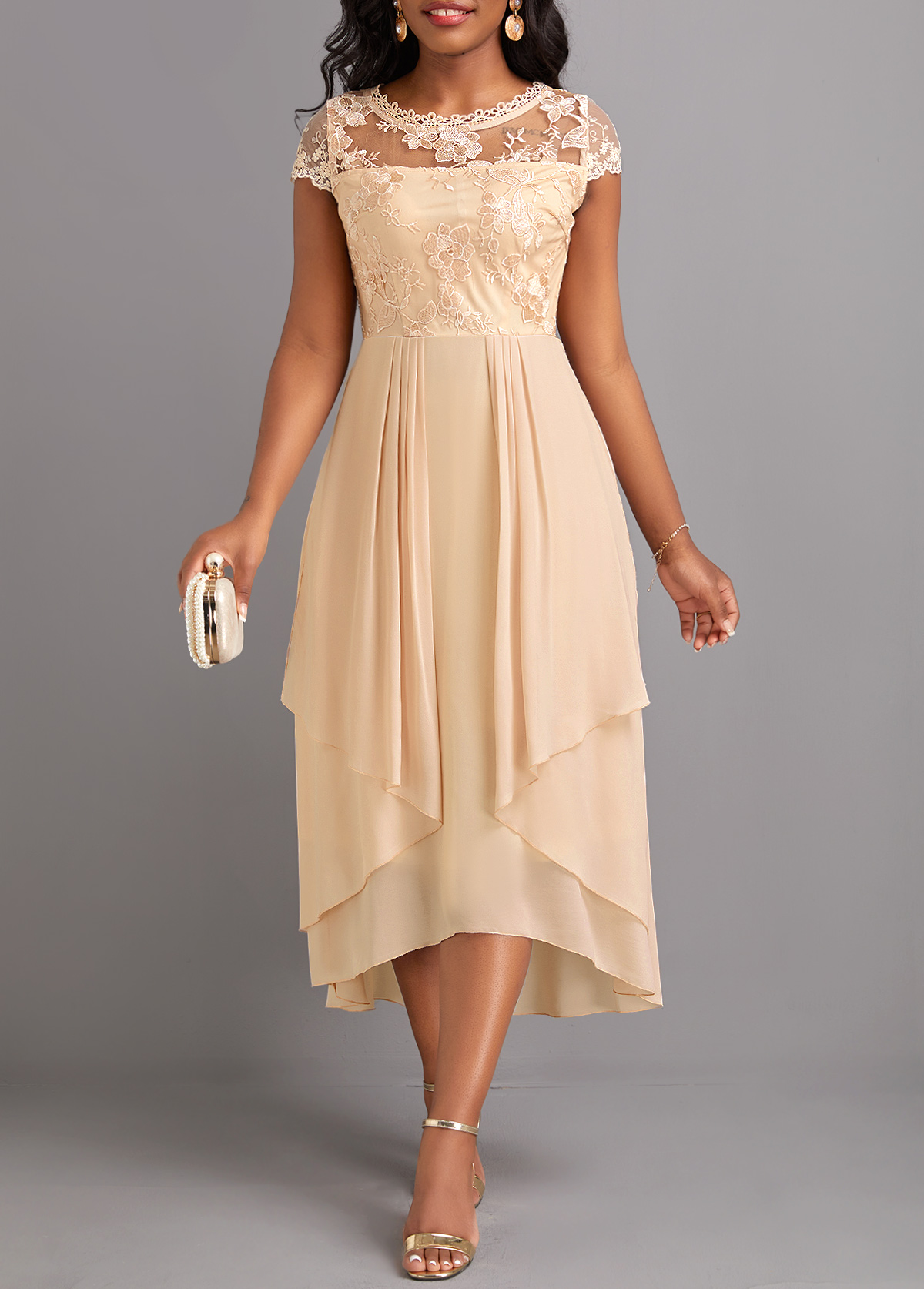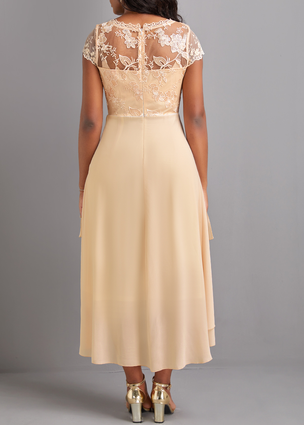 SALE Round Neck Lace Champagne High Low Dress Rosewe®
