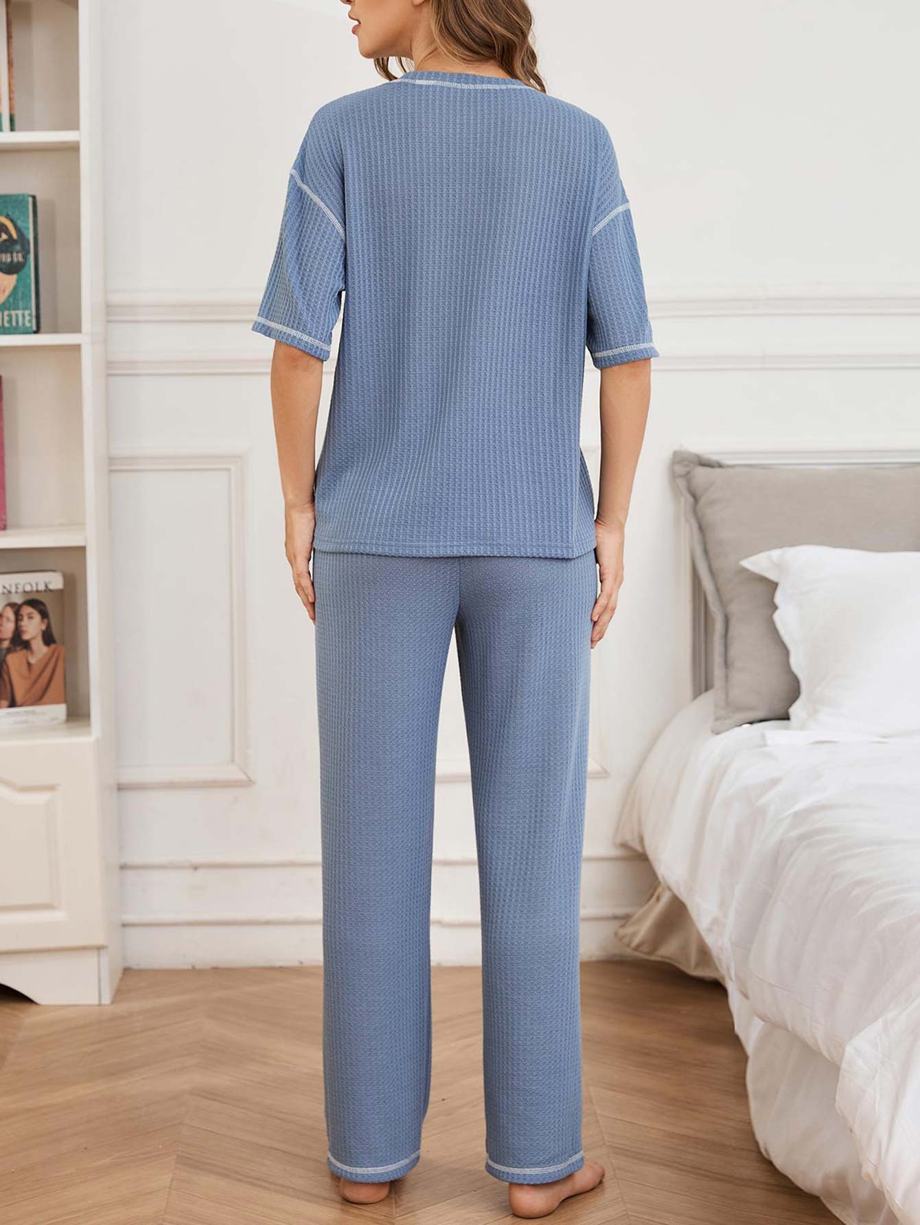 SALE Round Neck Short Sleeve Lounge Top and Pants Rosewe®