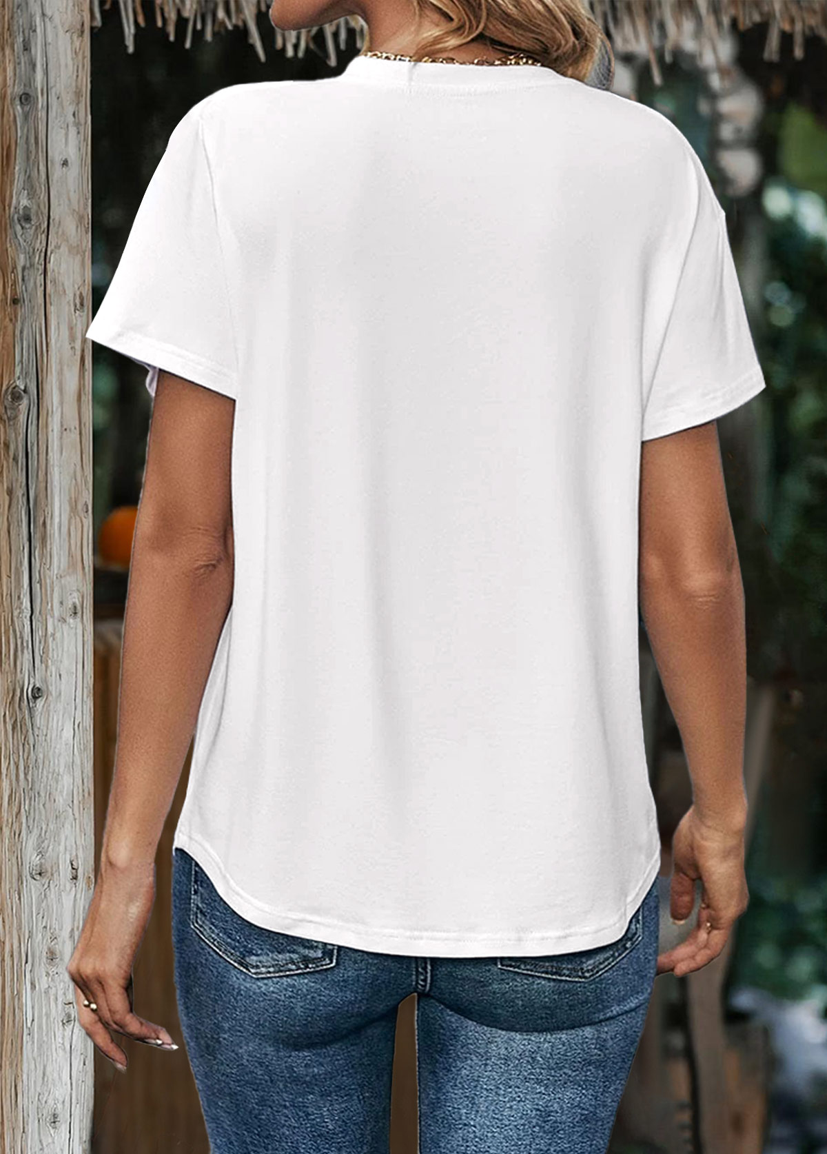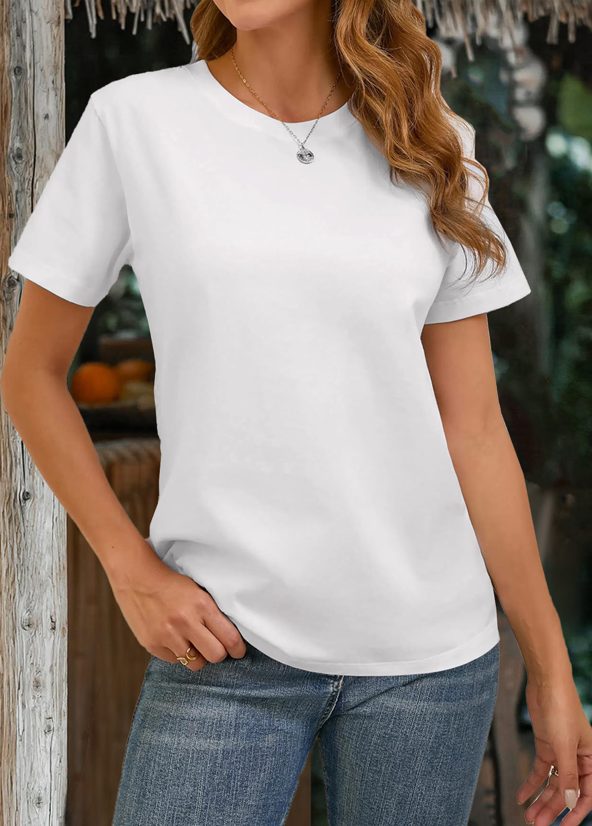 Round Neck White Short Sleeve T Shirt Rosewe®