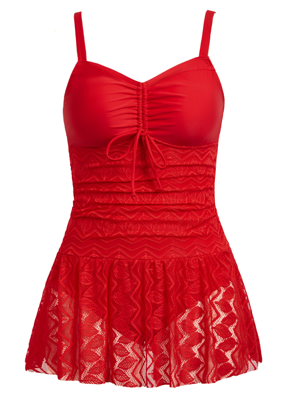 SALE Ruched Lace Red One Piece Swimwear Rosewe®