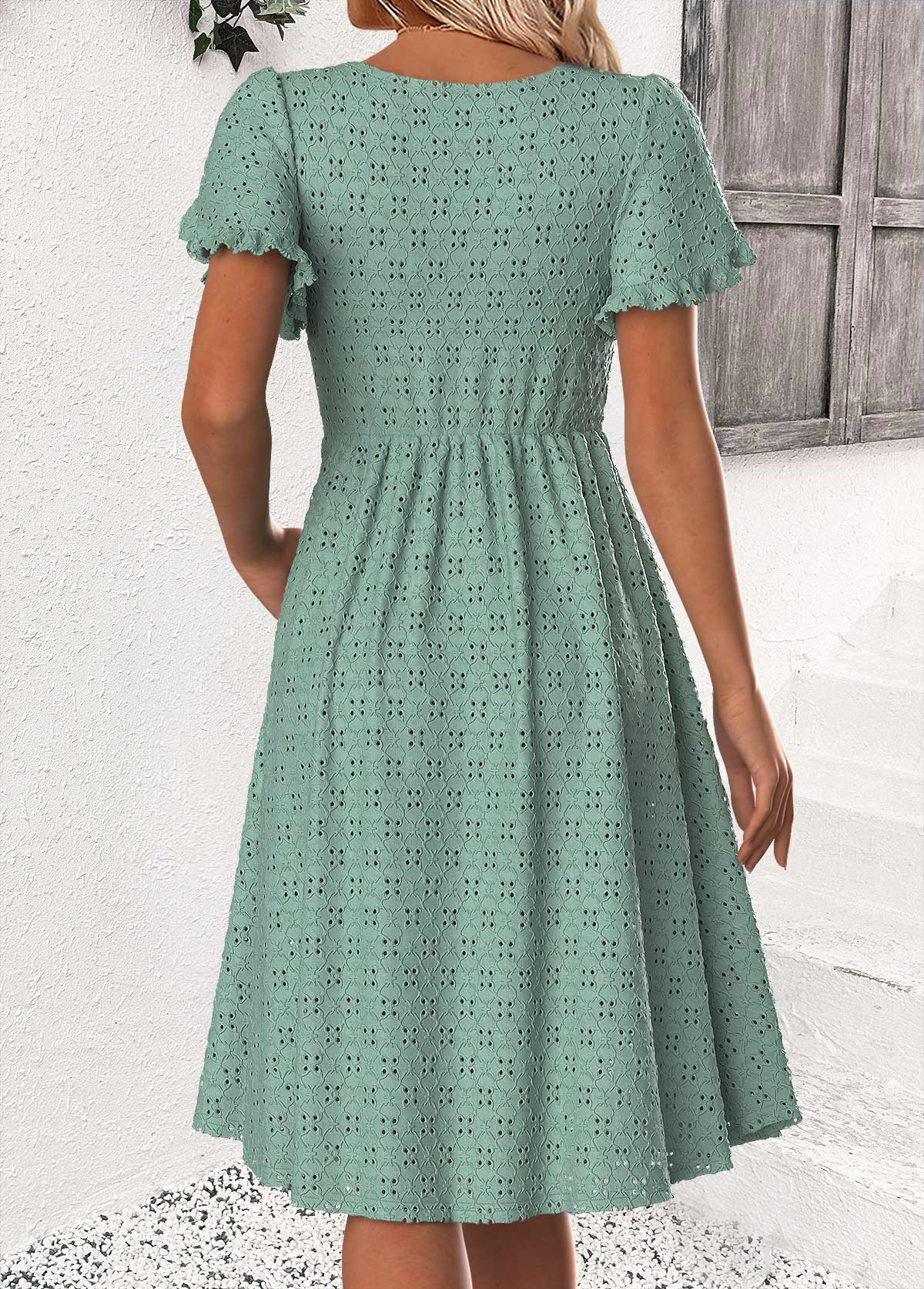 SALE Sage Green Short Sleeve Round Neck Dress Rosewe®