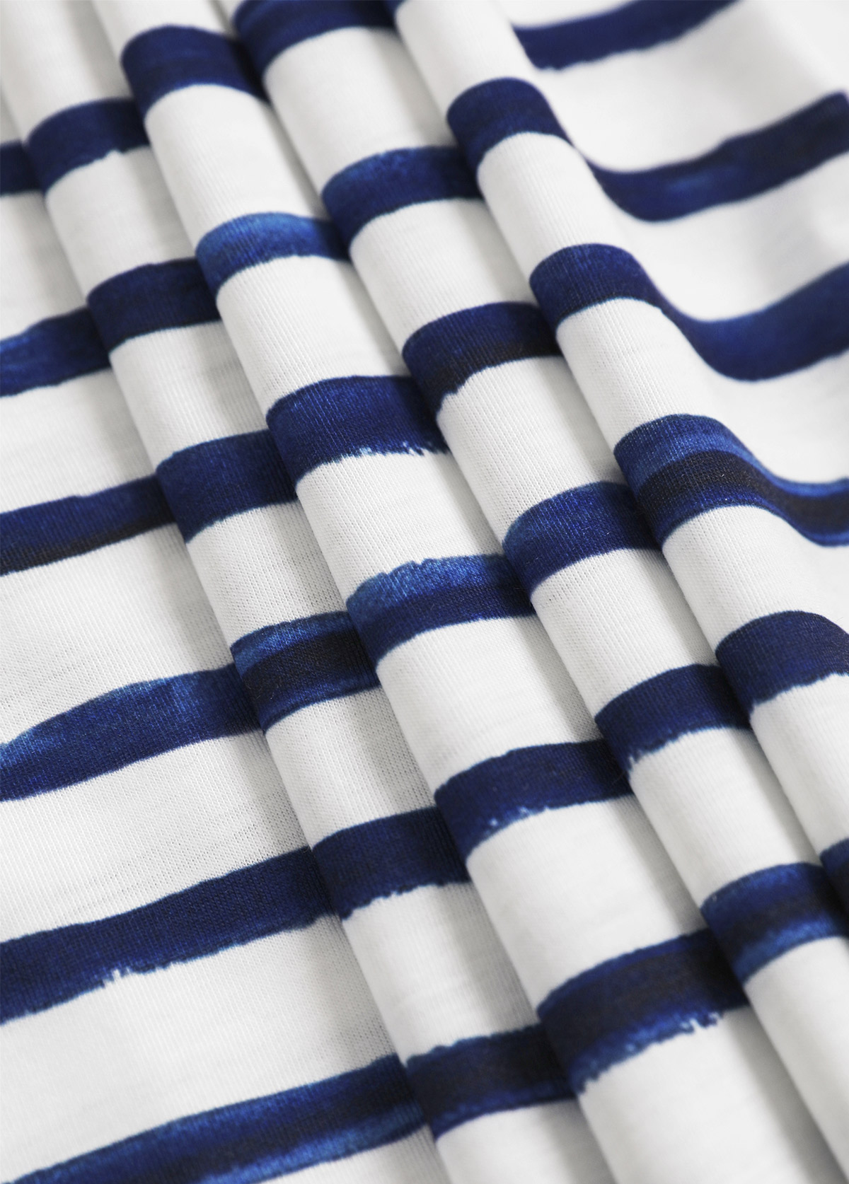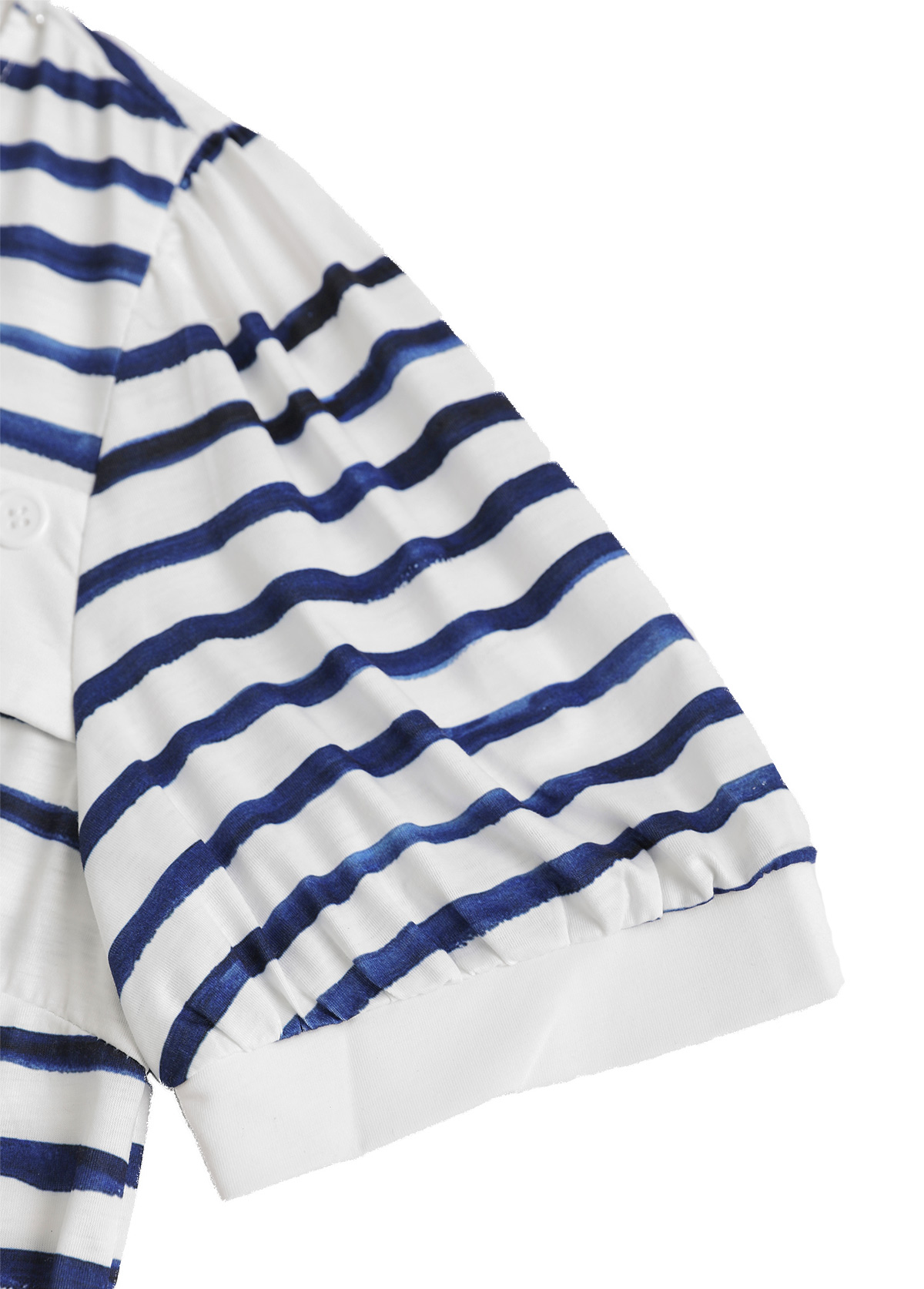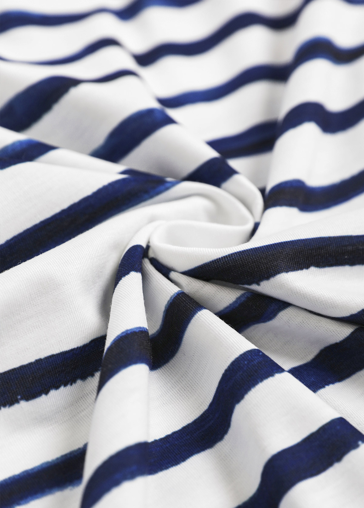 • Striped Asymmetry White Short Sleeve Asymmetrical Neck T Shirt