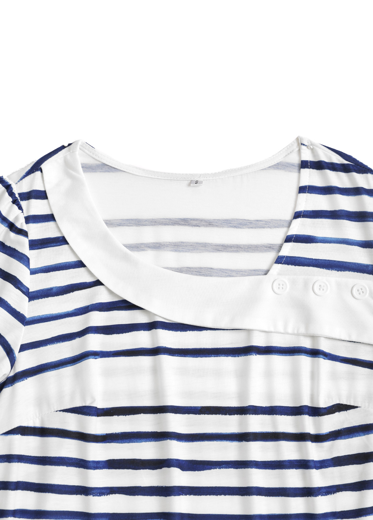 SALE Striped Asymmetry White Short Sleeve Asymmetrical Neck T Shirt Rosewe®