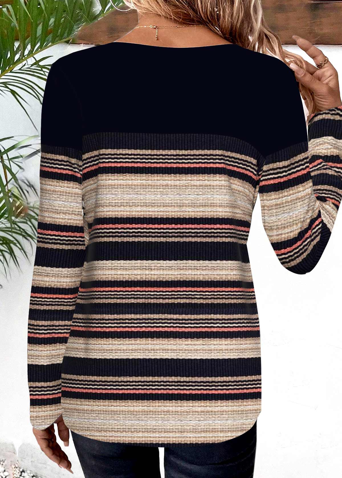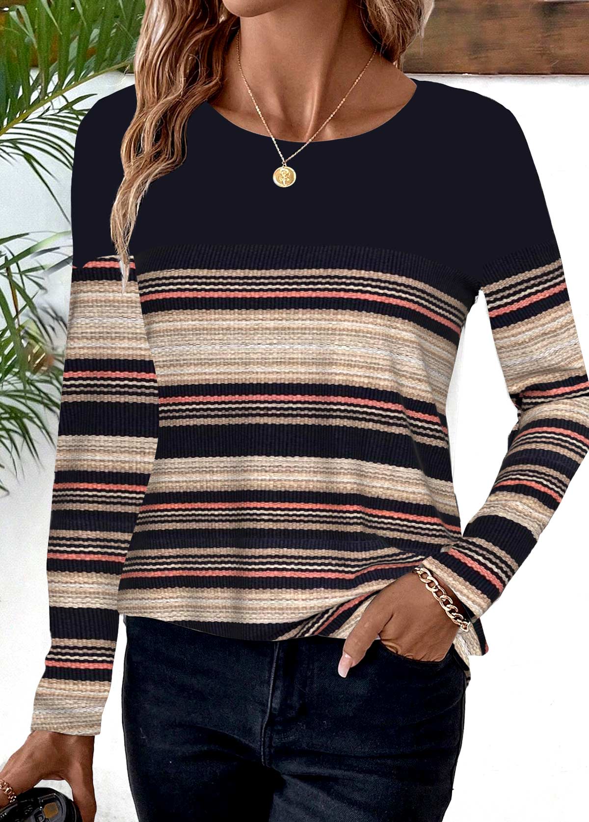 SALE Striped Black Long Sleeve Round Neck T Shirt Rosewe®