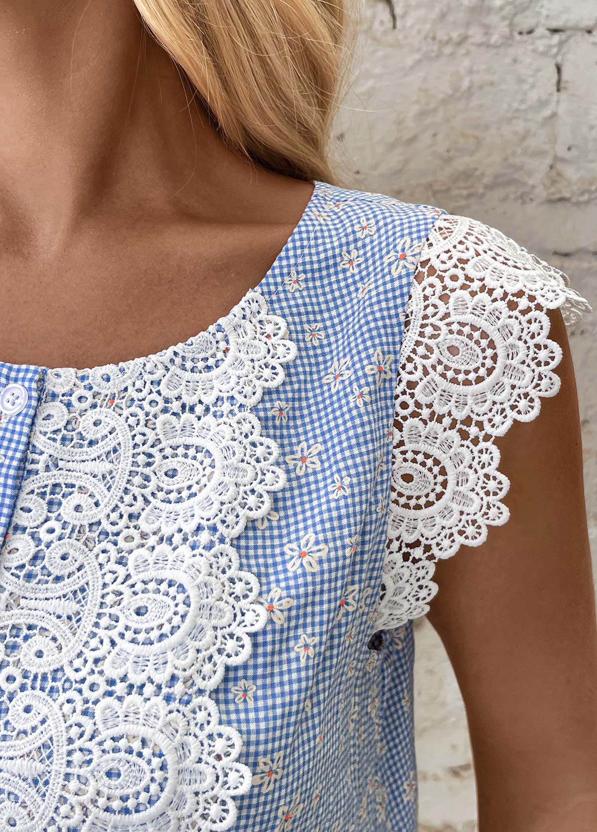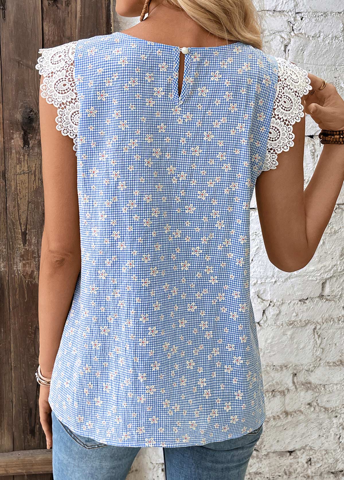 • Striped Blue Short Sleeve Round Neck Tank Top