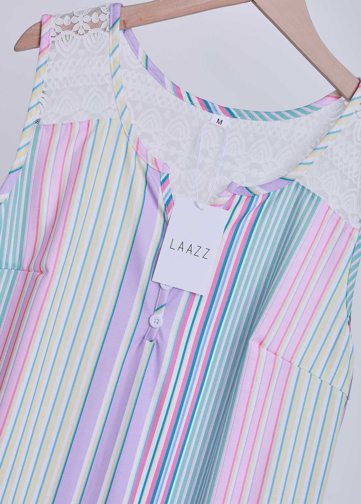SALE Striped Lace Multi Color Sleeveless Split Neck Tank Top Rosewe®