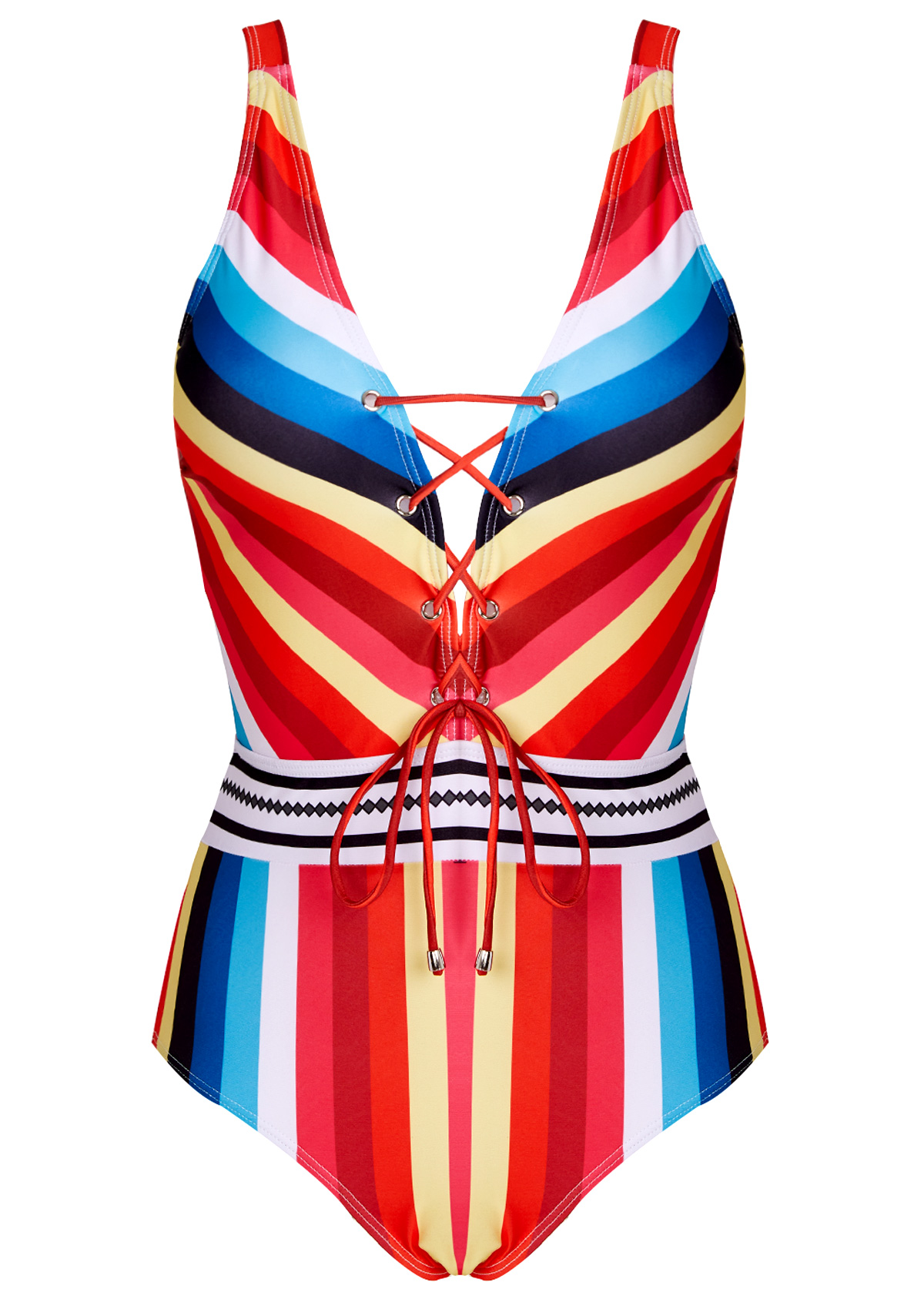 • Striped Lace Up Wide Strap One Piece Swimwear