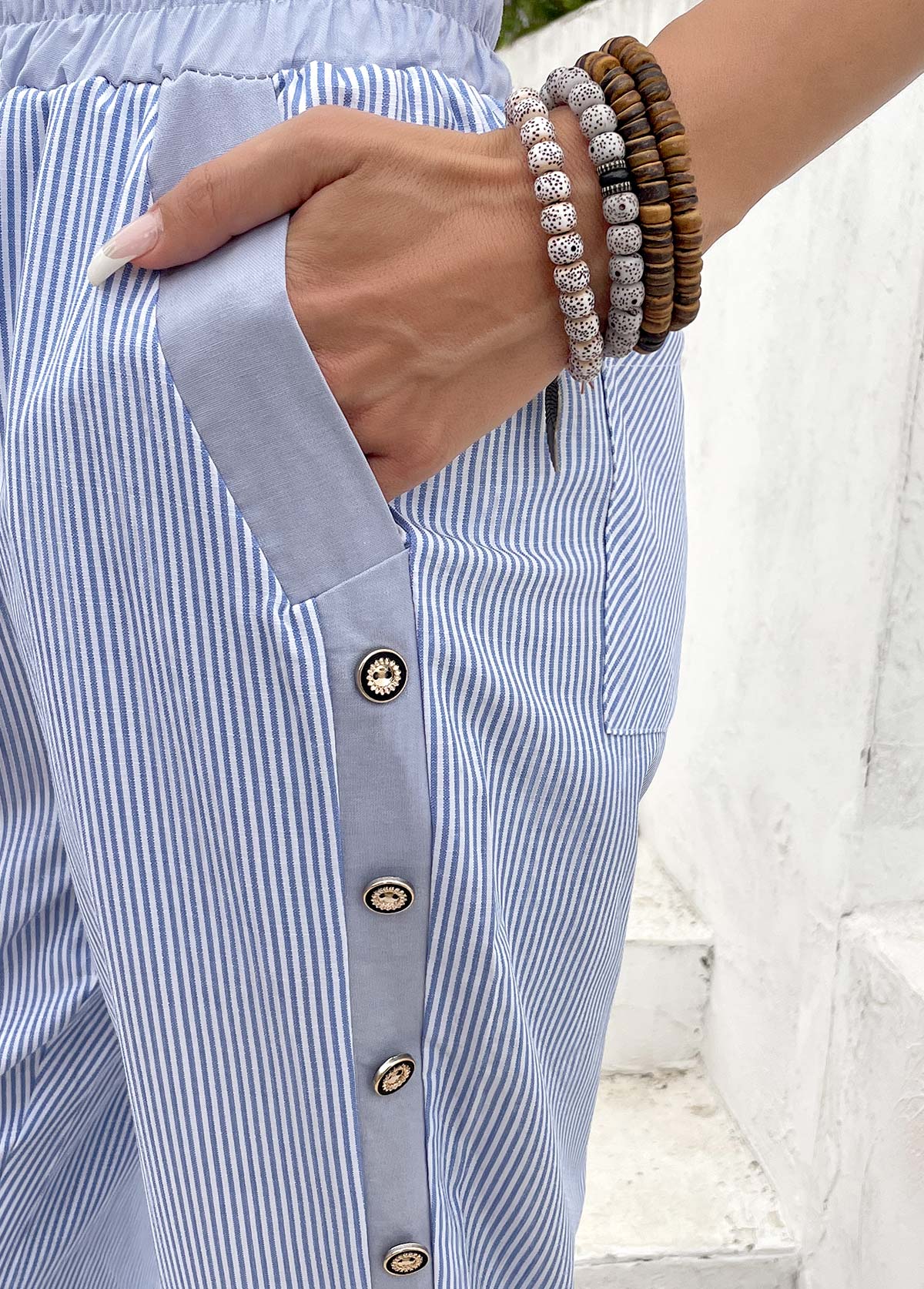 • Striped Light Blue Straight Leg Elastic Waist Pants
