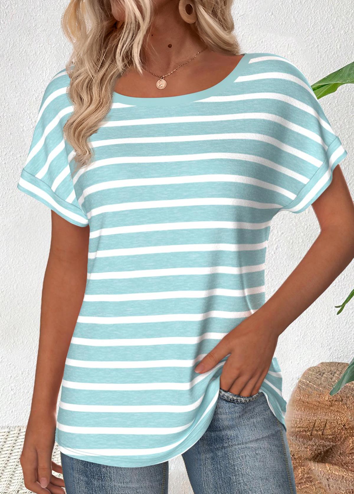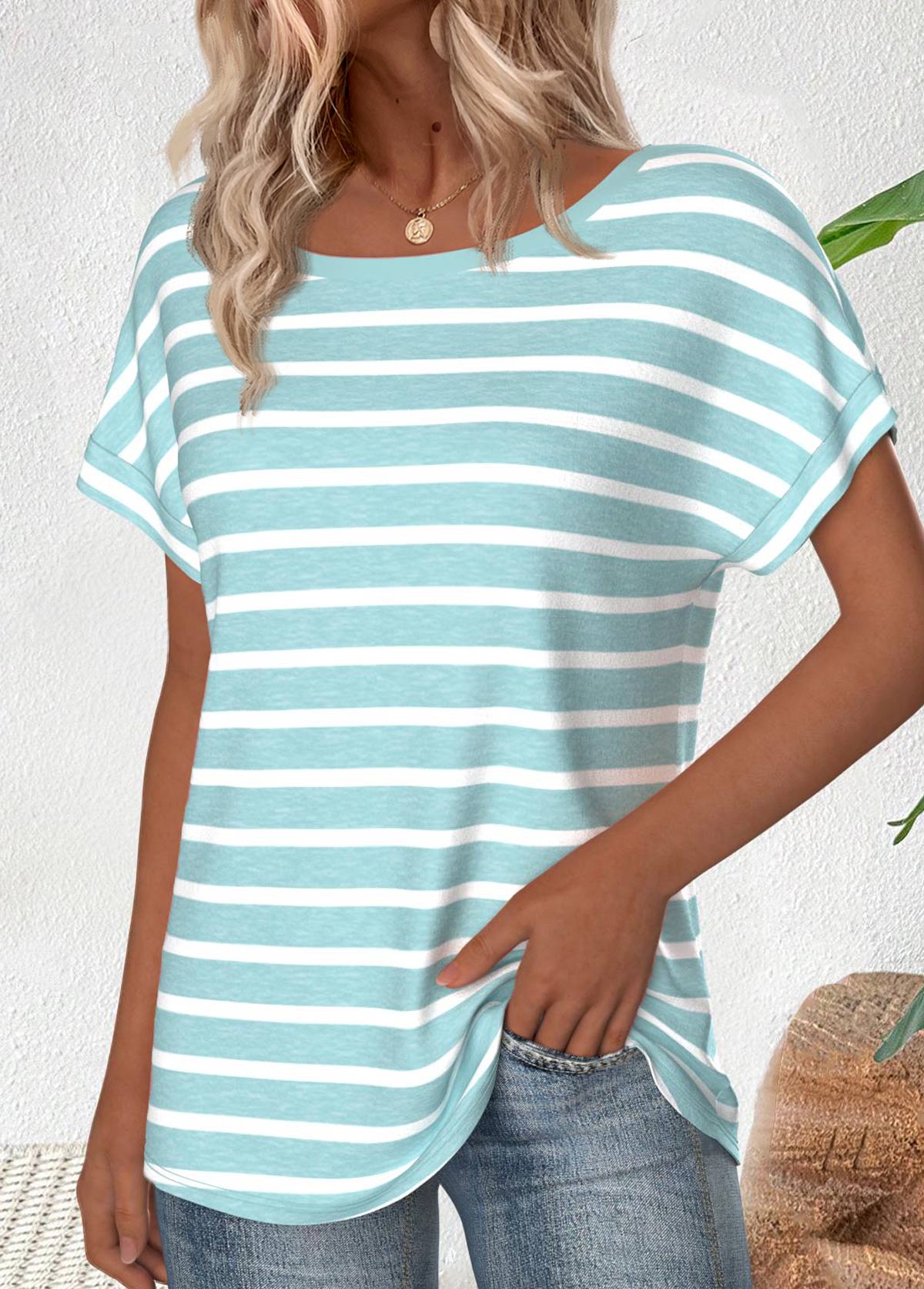 SALE Striped Light Pink Short Sleeve Boat Neck T Shirt Rosewe®