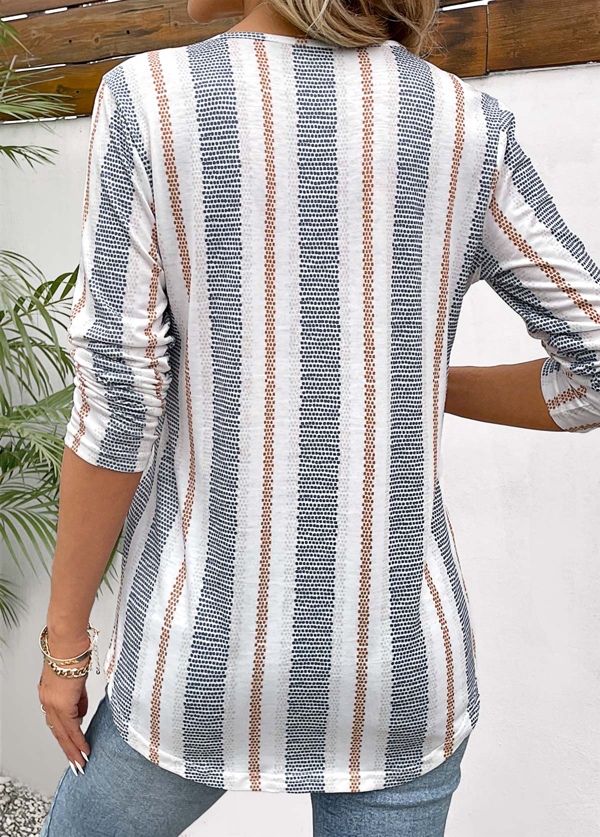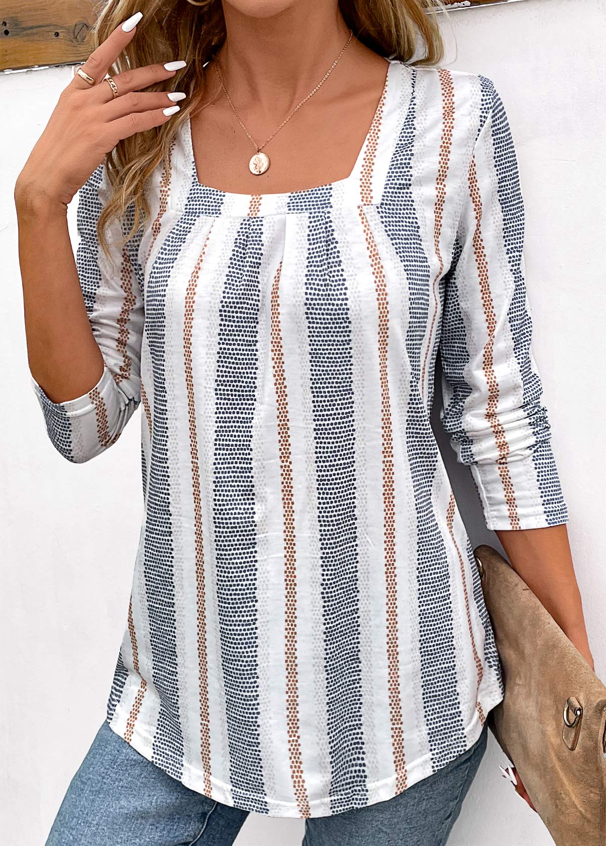• Striped Patchwork Long Sleeve Square Neck T Shirt