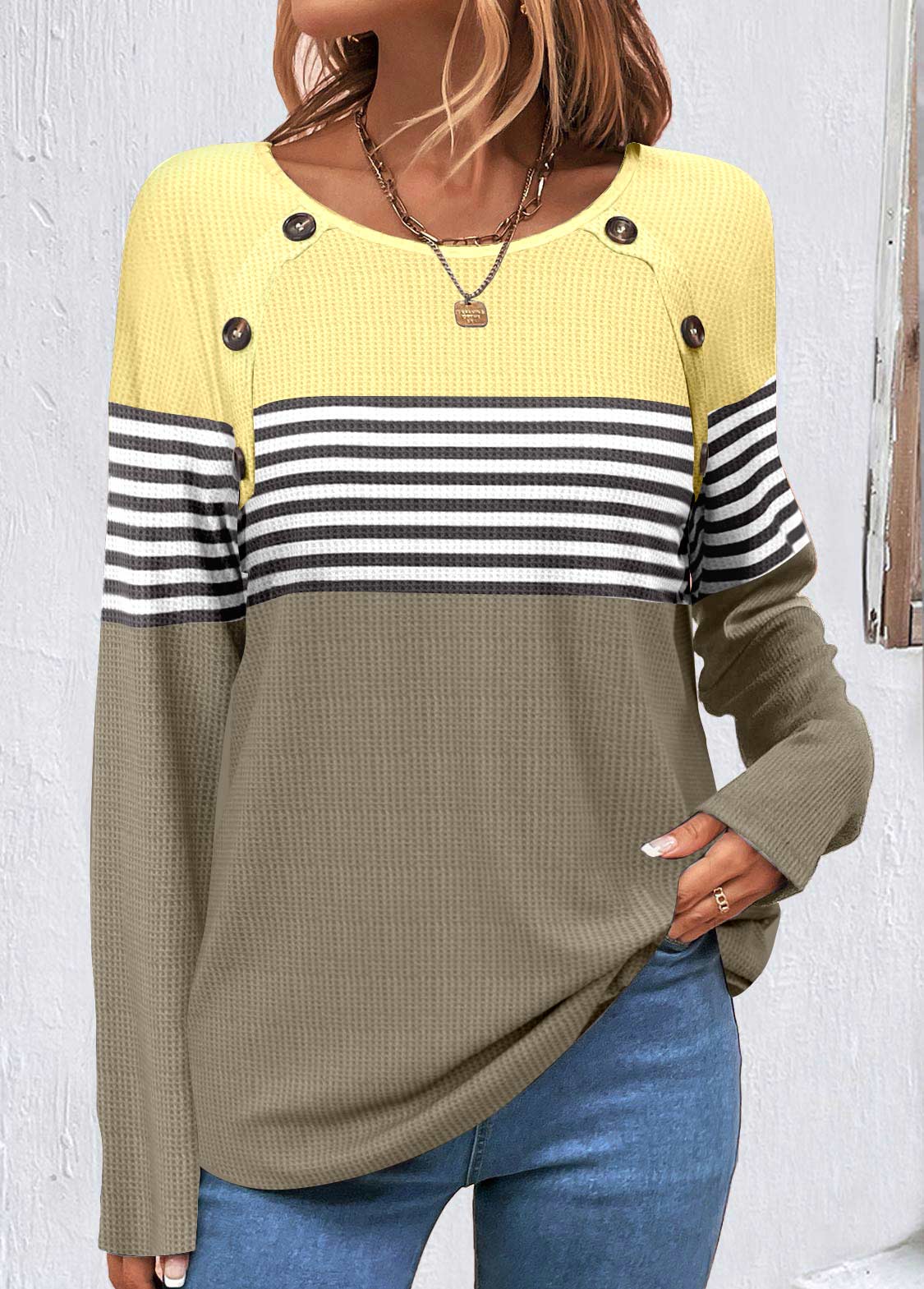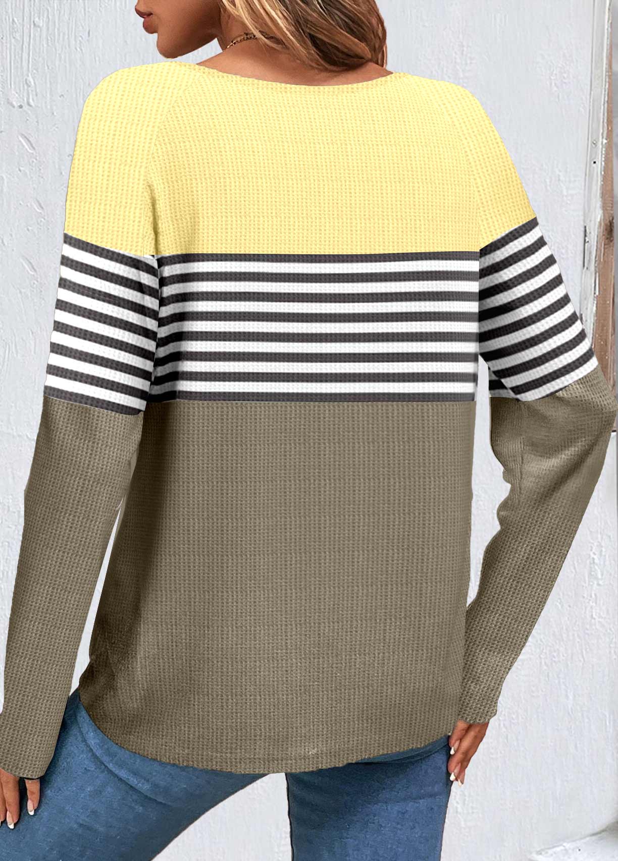SALE Striped Patchwork Sage Green Scoop Neck Sweatshirt Rosewe®