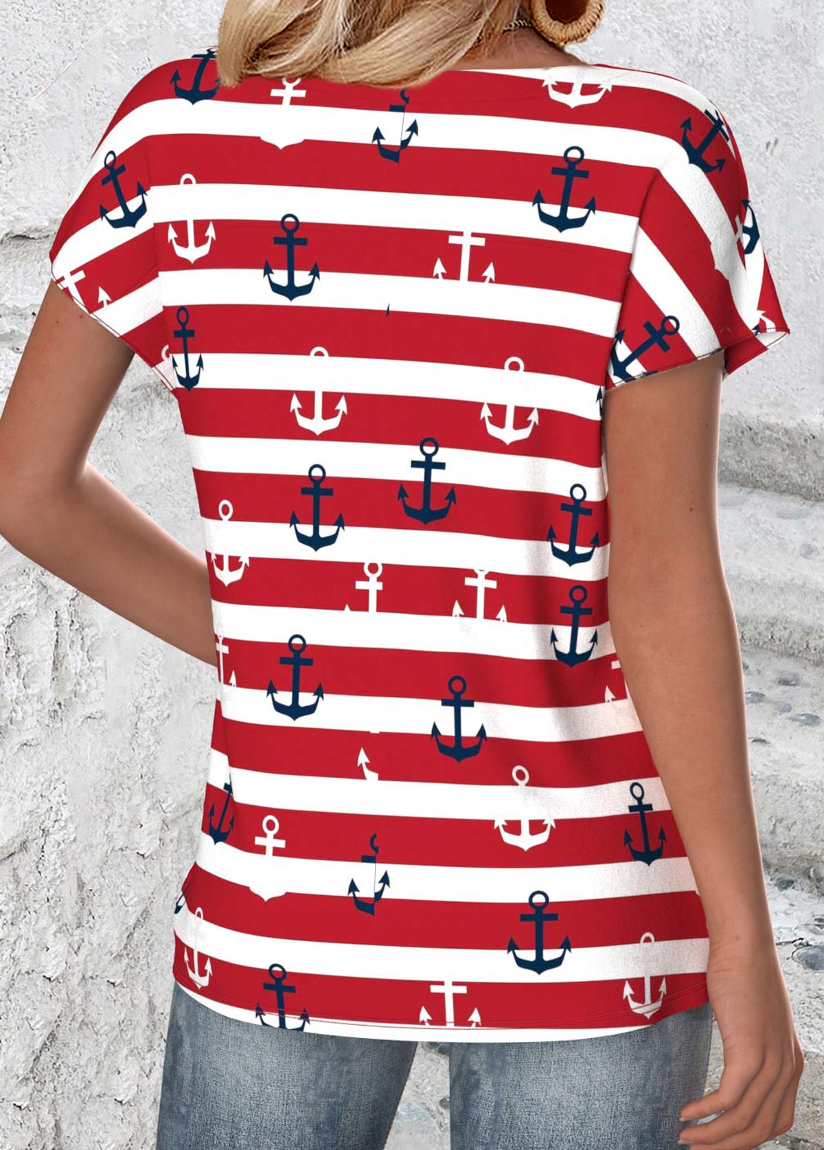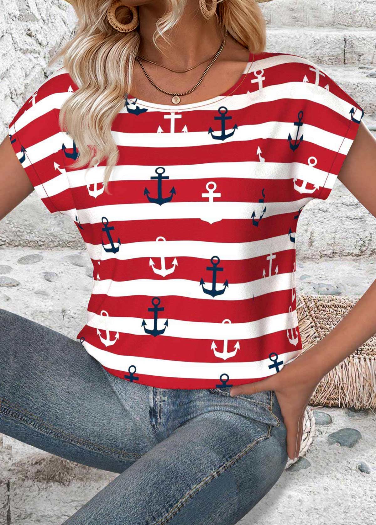 SALE Striped Red Short Sleeve Round Neck T Shirt Rosewe®