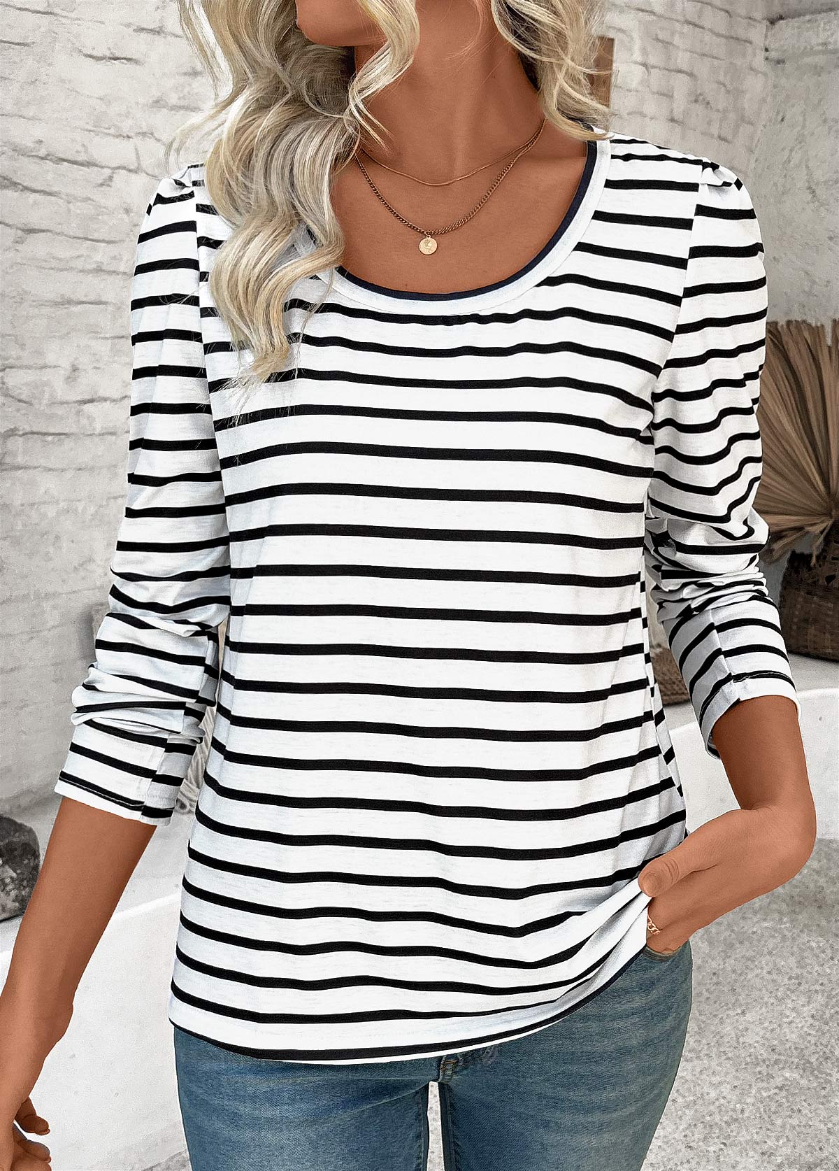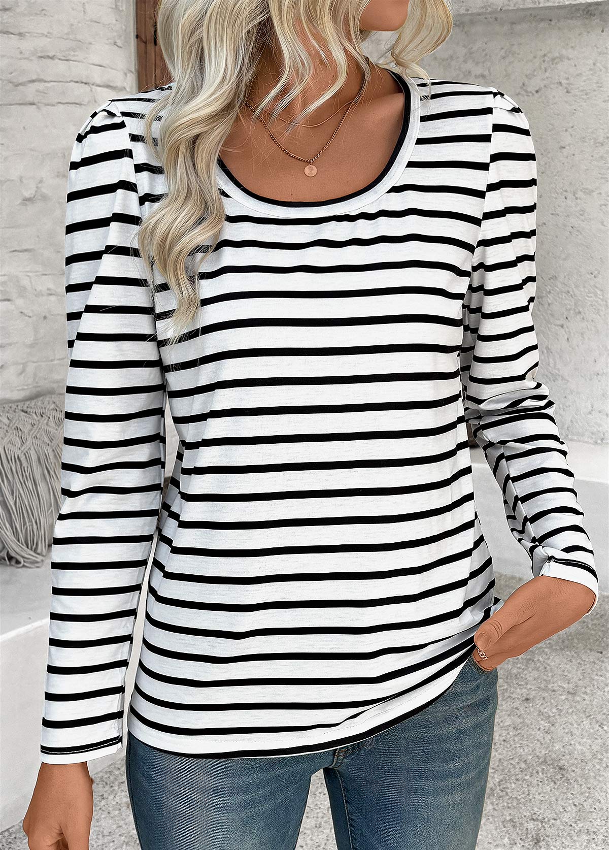 SALE Striped White Long Sleeve Round Neck T Shirt Rosewe®