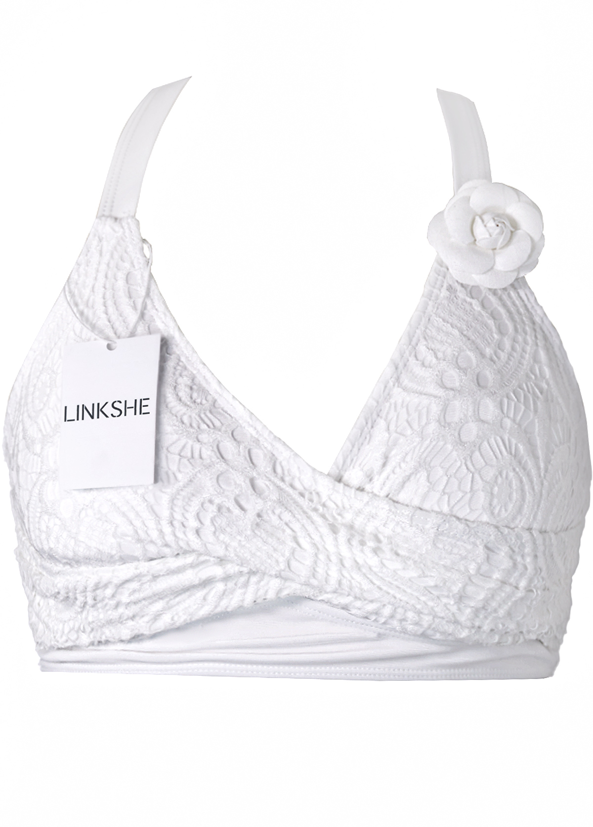 SALE Surplice V Neck Lace White Bikini Set Rosewe®