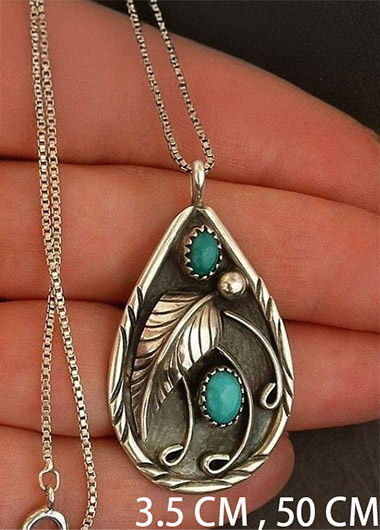 Teardrop Turquoise Feather Design Metal Necklace Rosewe®