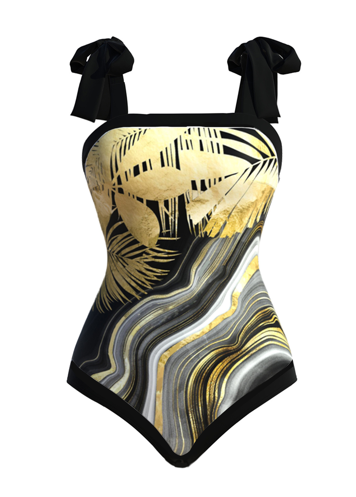 • Tie Marble Print Black One Piece Swimwear