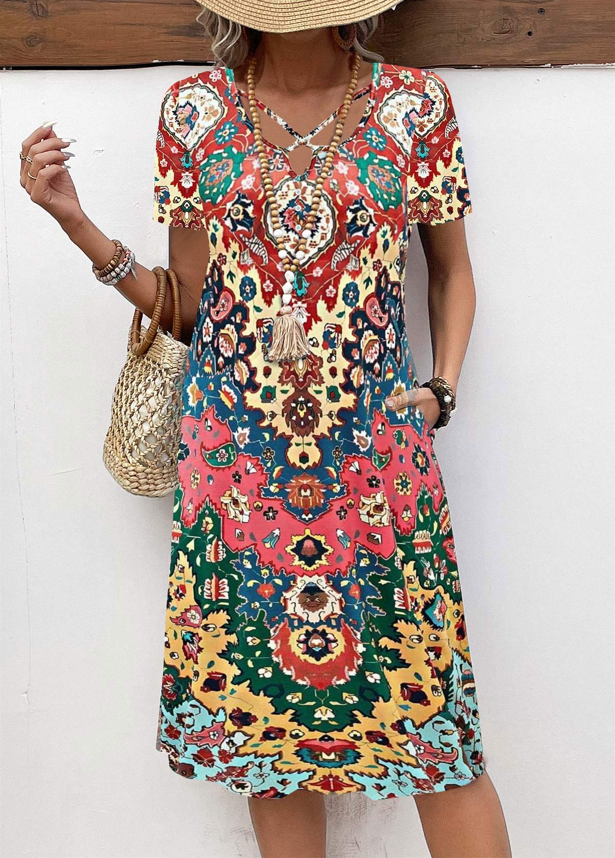 • Tribal Print Breathable Rainbow Color A Line Dress