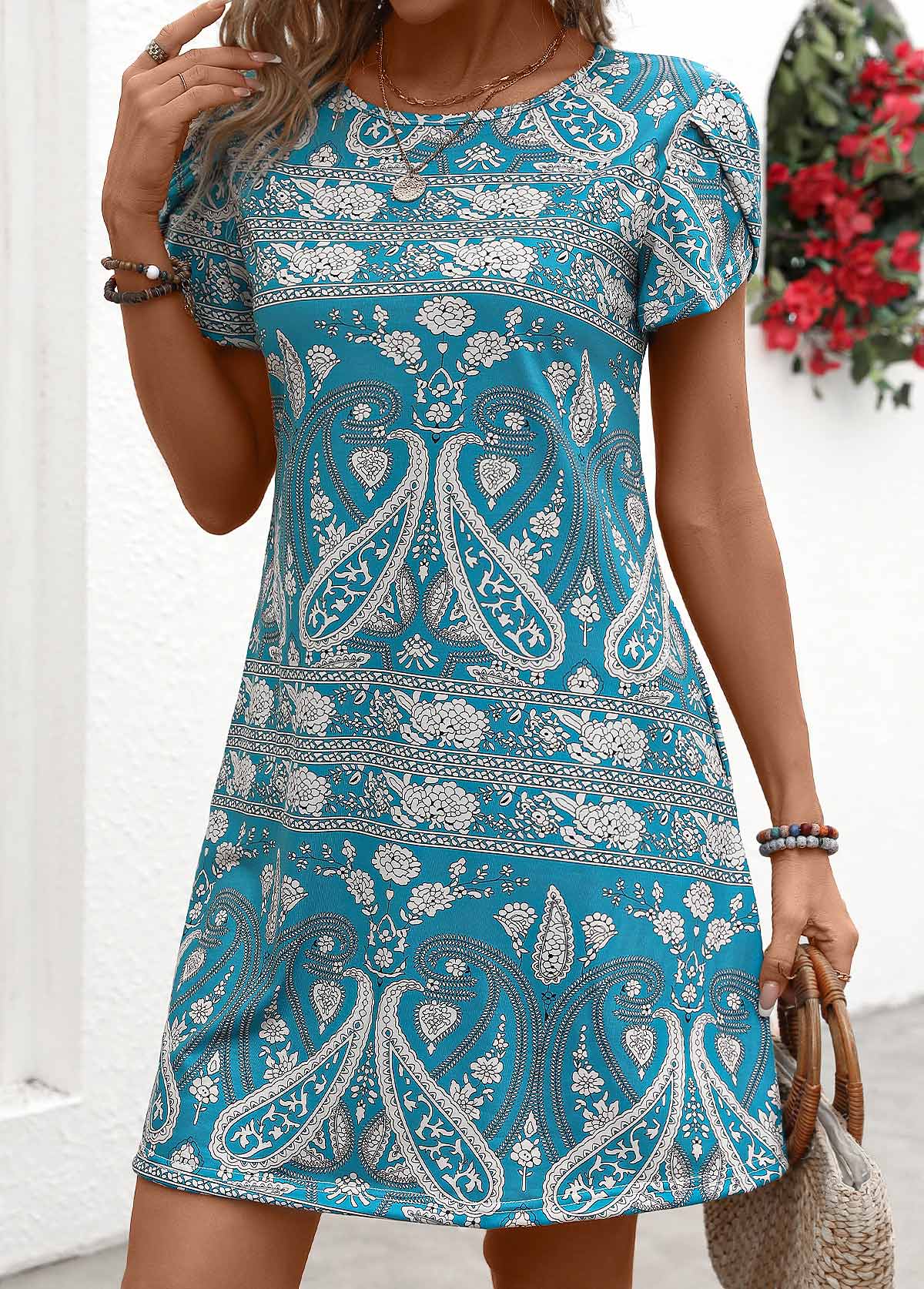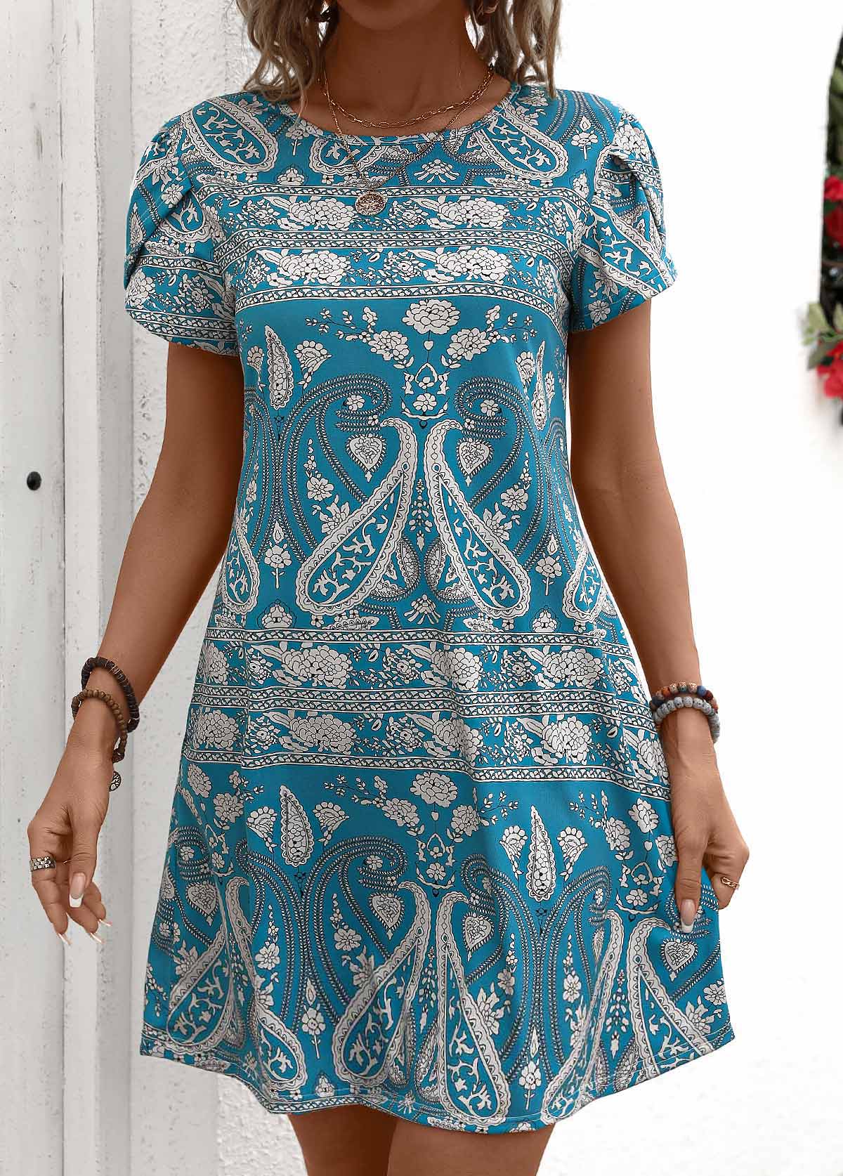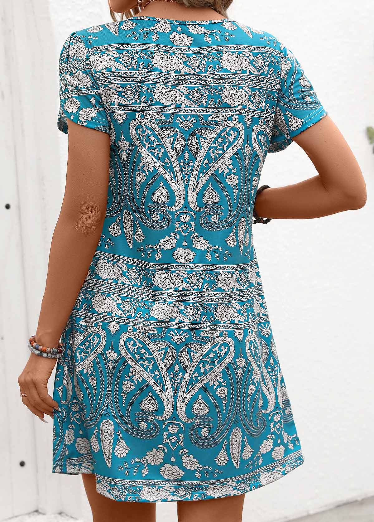 SALE Tribal Print Mint Green Round Neck Dress Rosewe®
