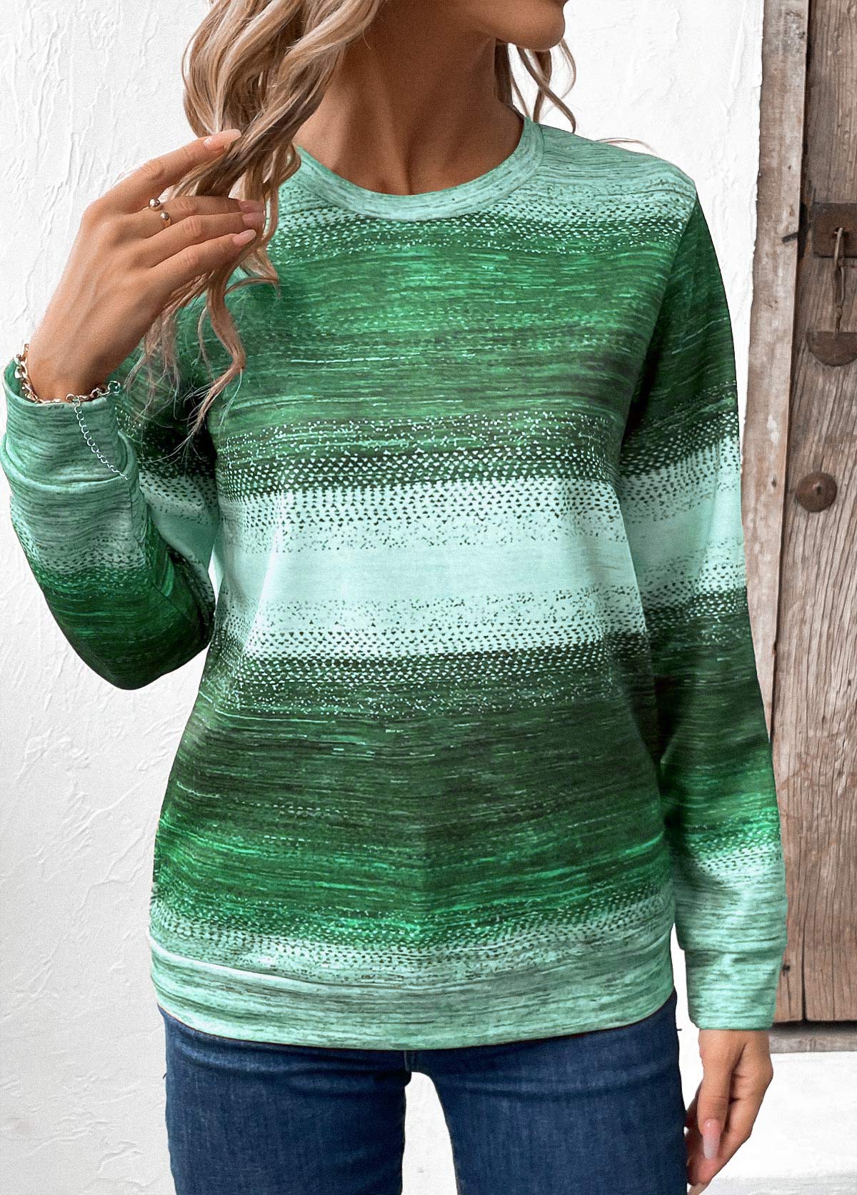 Tribal Print Patchwork Green Long Sleeve Sweatshirt Rosewe®