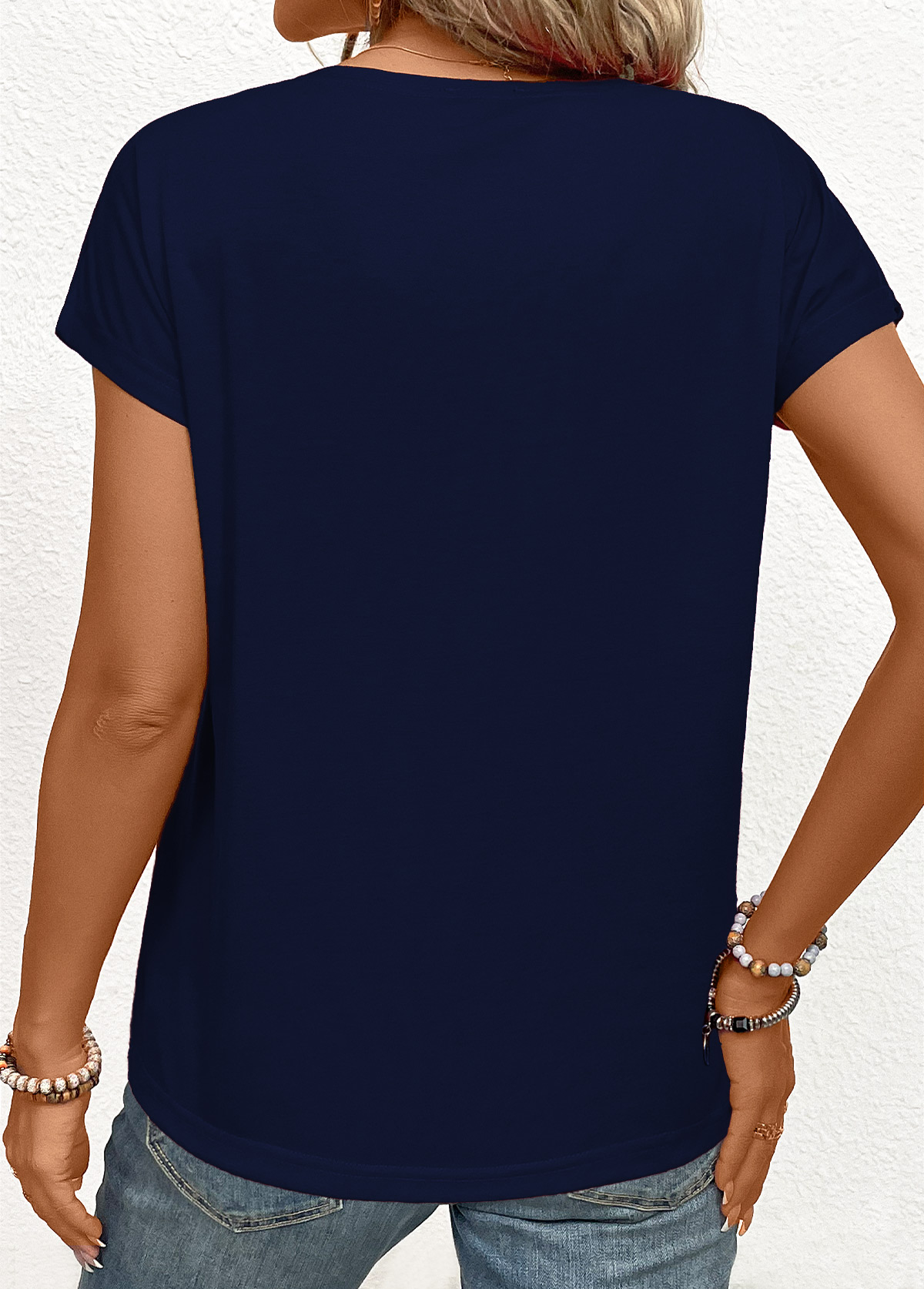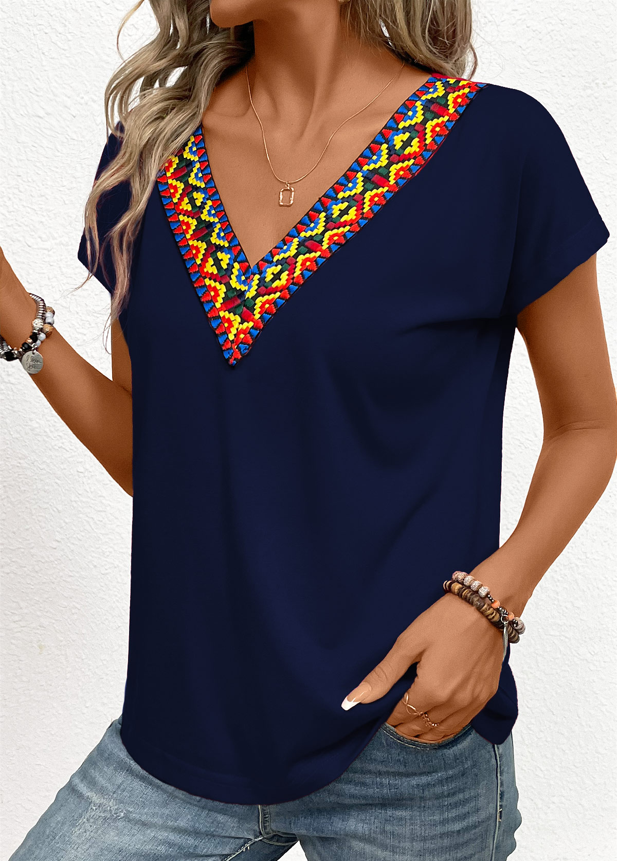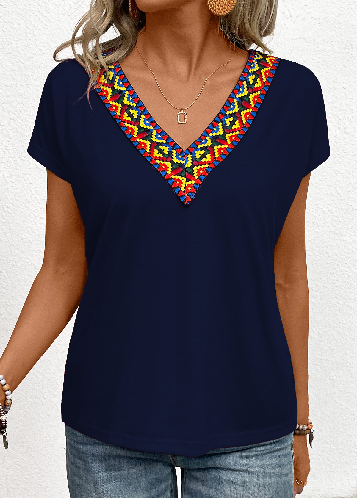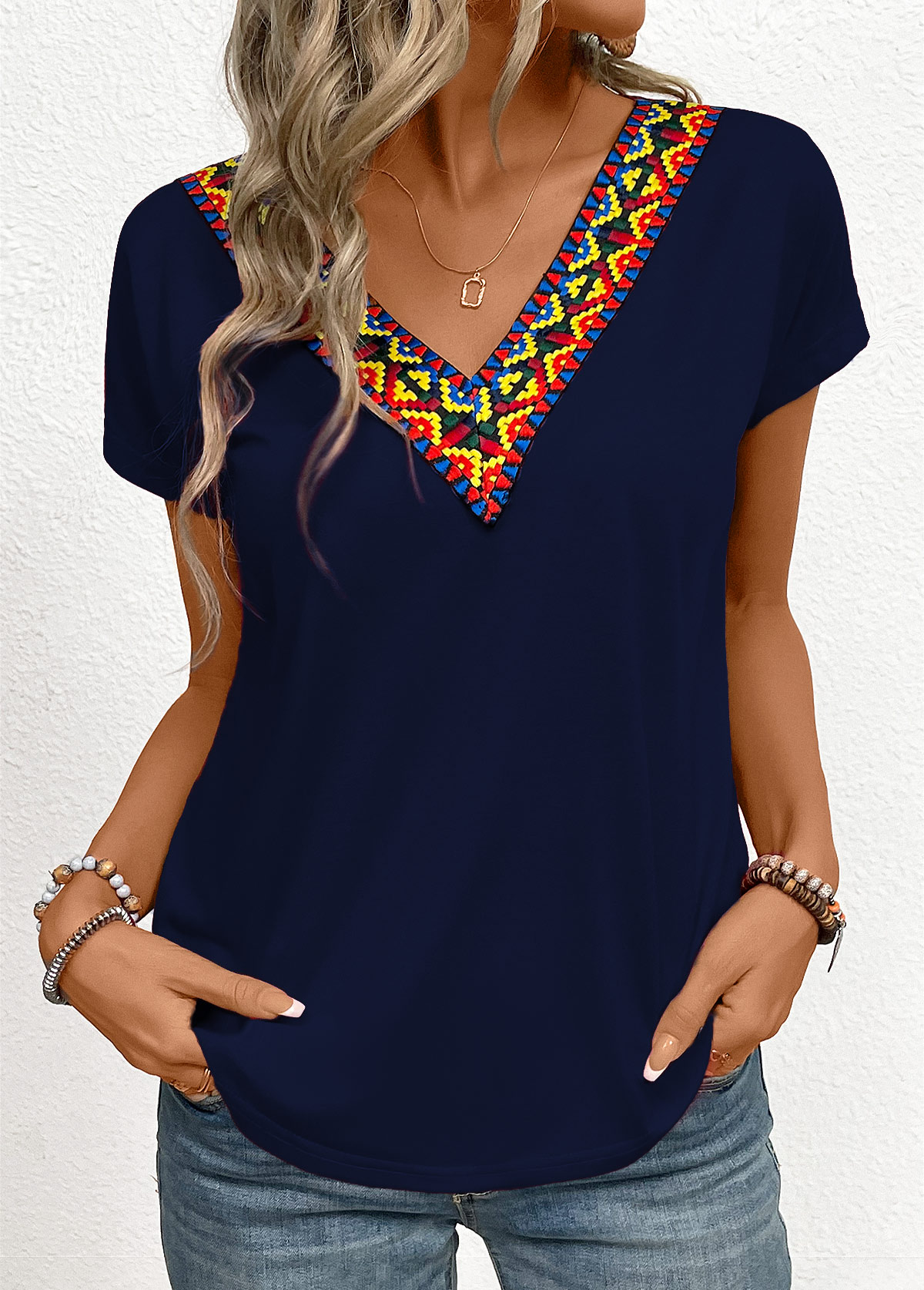 SALE Tribal Print Patchwork Navy Short Sleeve T Shirt Rosewe®