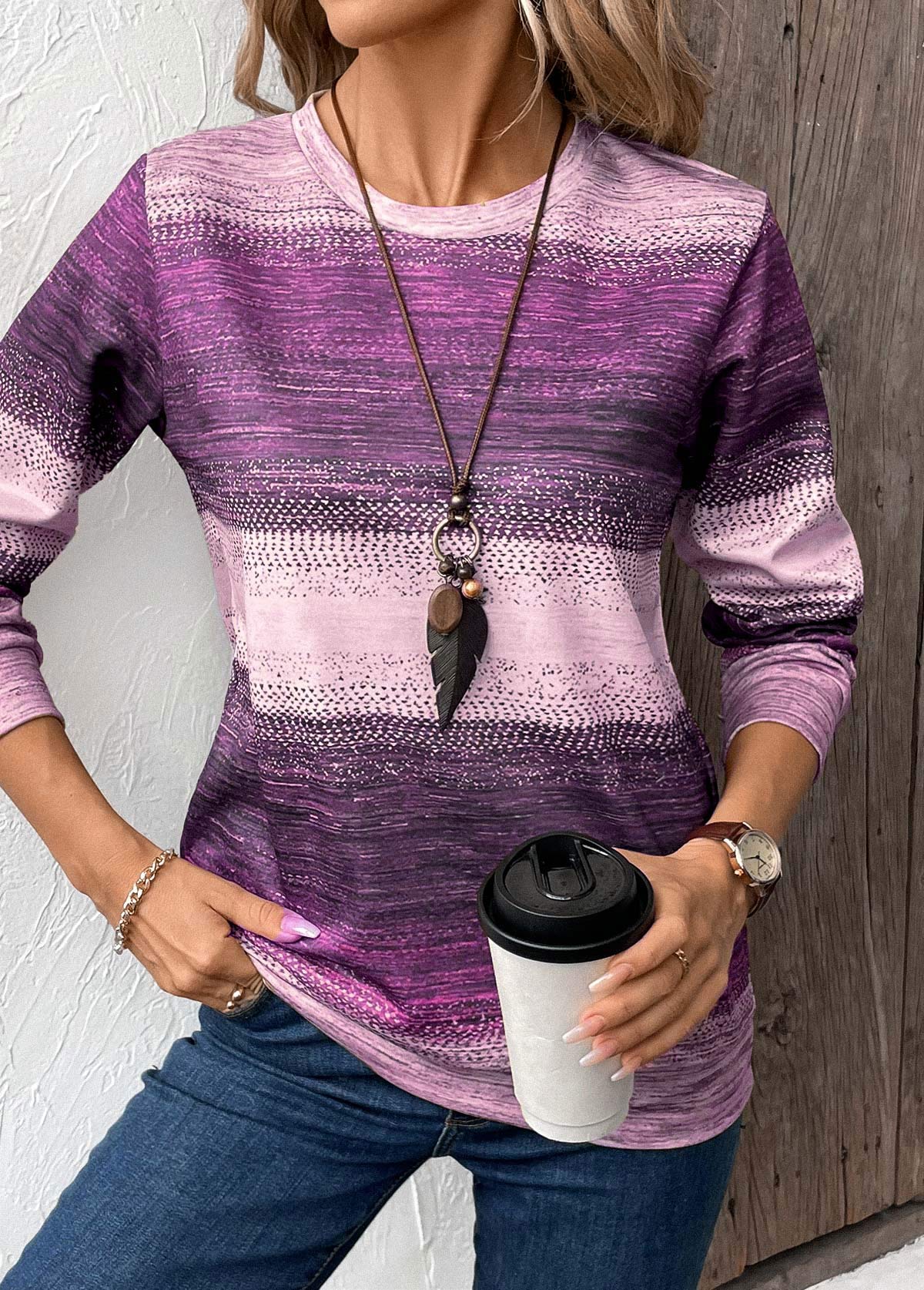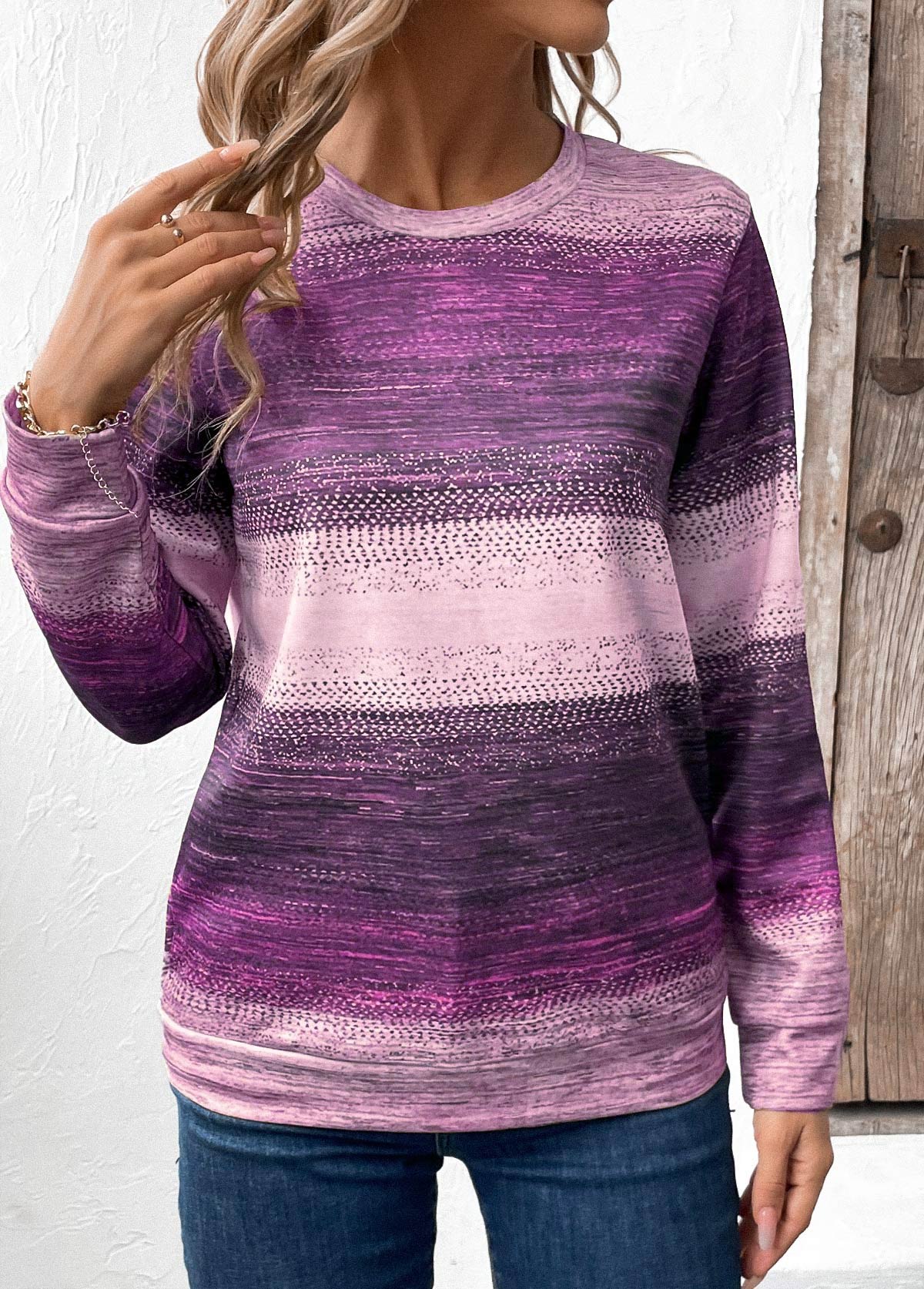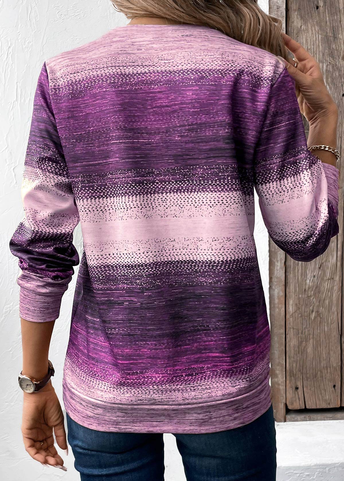 SALE Tribal Print Patchwork Purple Long Sleeve Sweatshirt Rosewe®