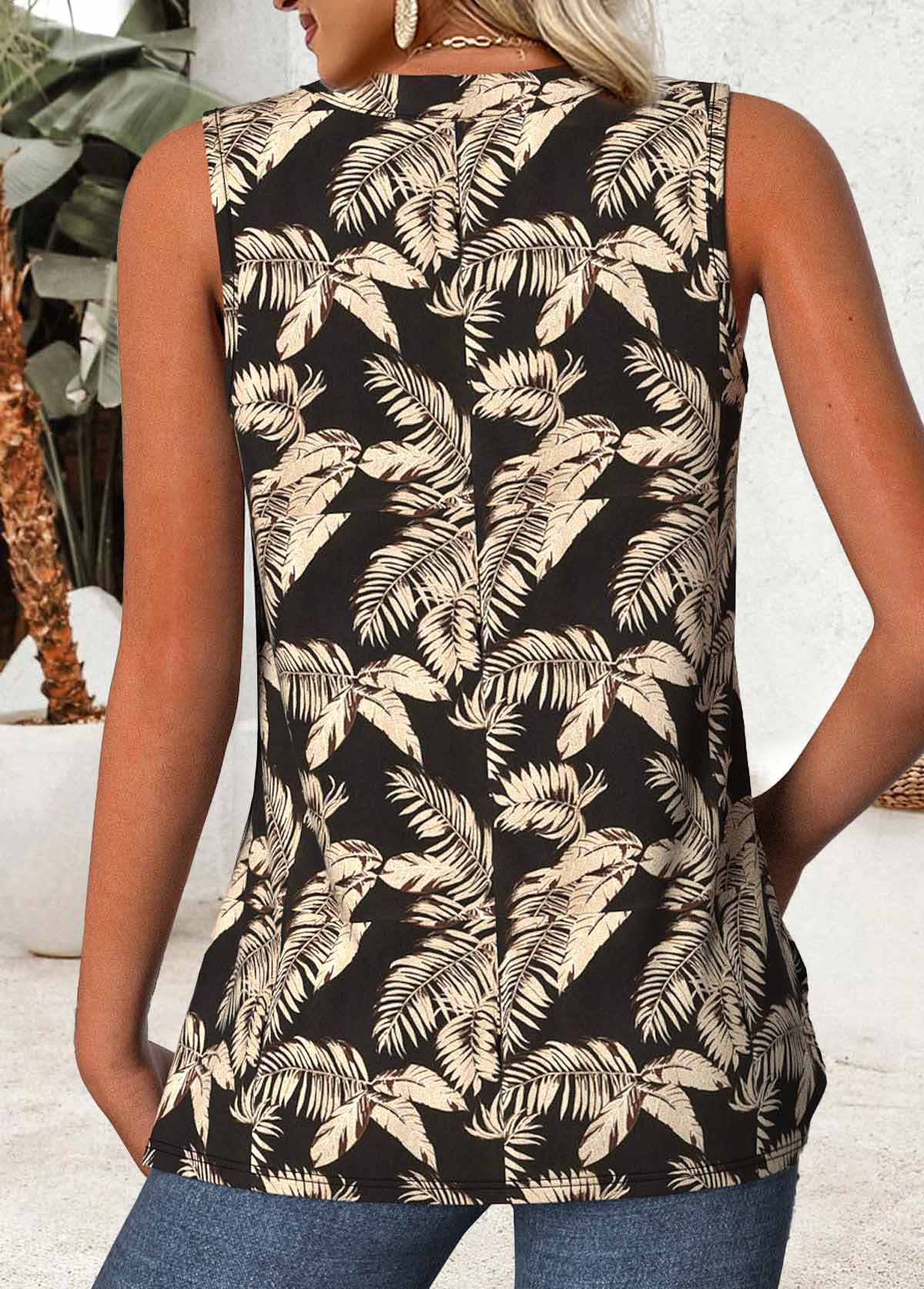 SALE Tropical Plants Print Black Sleeveless V Neck Tank Top Rosewe®