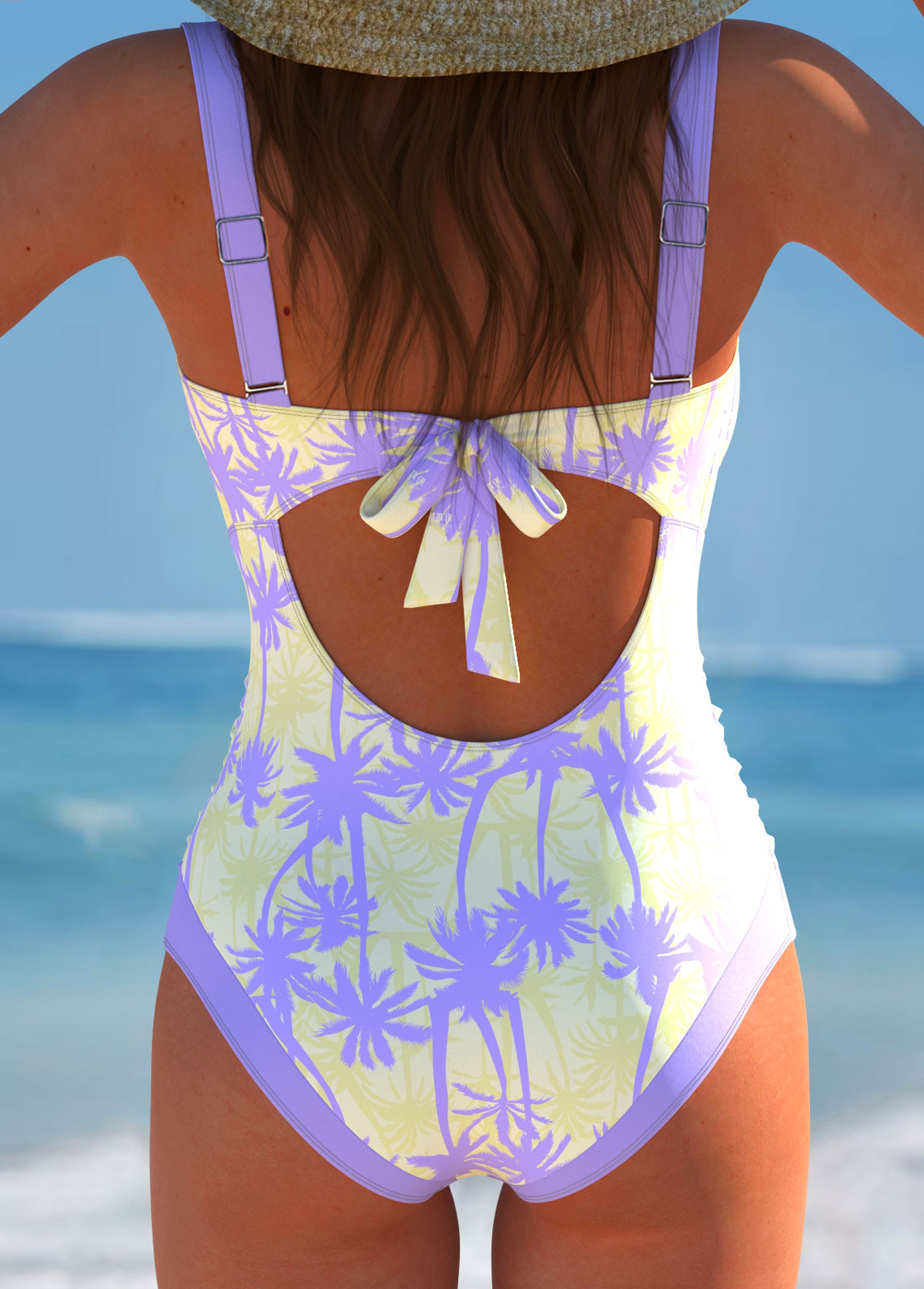 • Tropical Plants Print Cut Out One Piece Swimwear