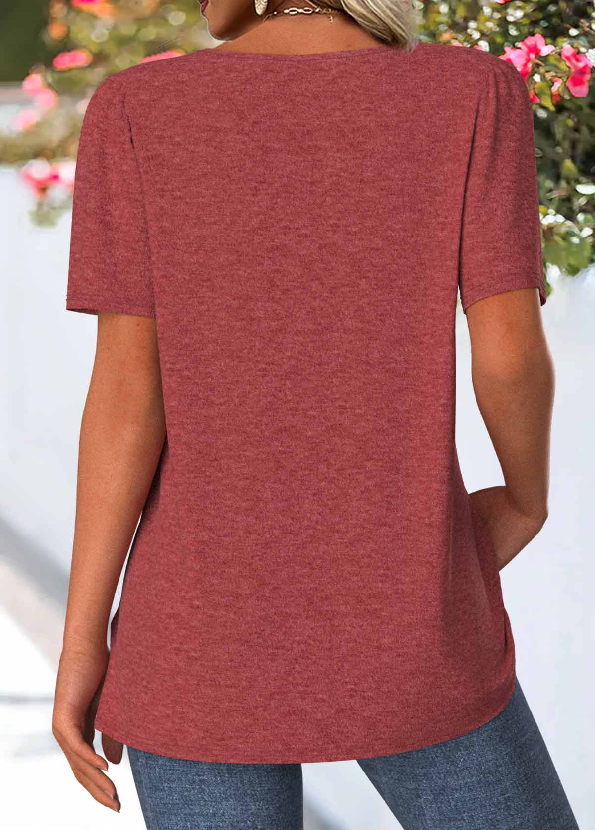 Tuck Stitch Brick Red Short Sleeve T Shirt Rosewe®