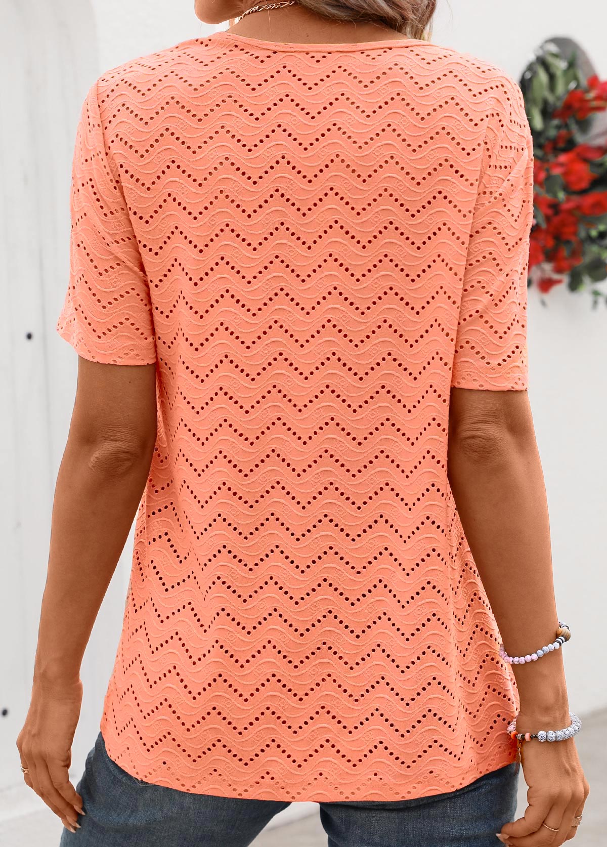 SALE Tuck Stitch Orange Short Sleeve Round Neck T Shirt Rosewe®