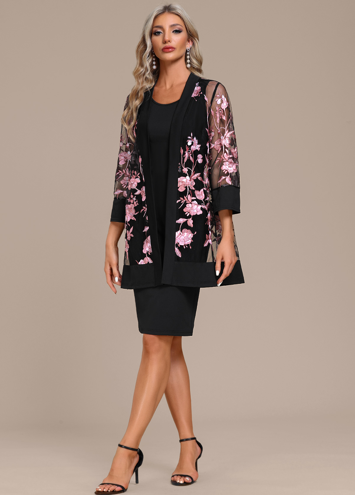 Two Piece Round Neck Black Shift Dress and Cardigan Rosewe®