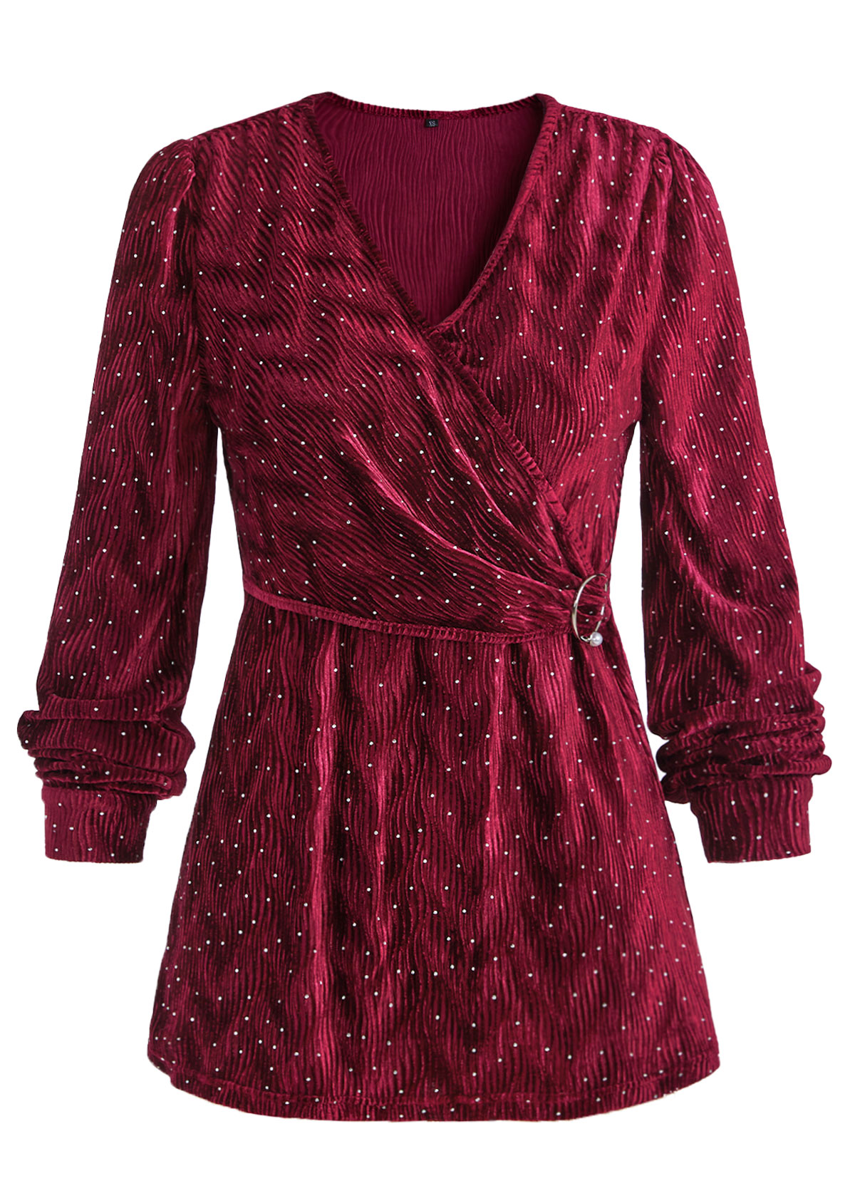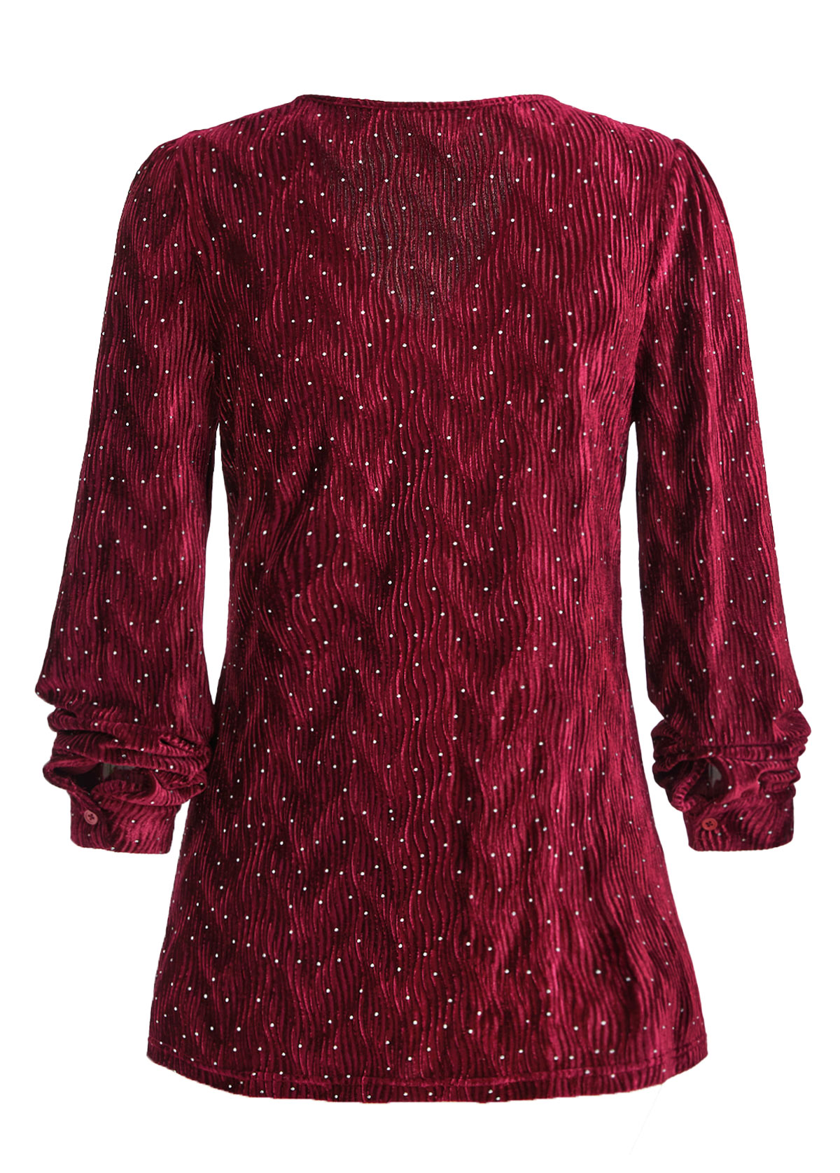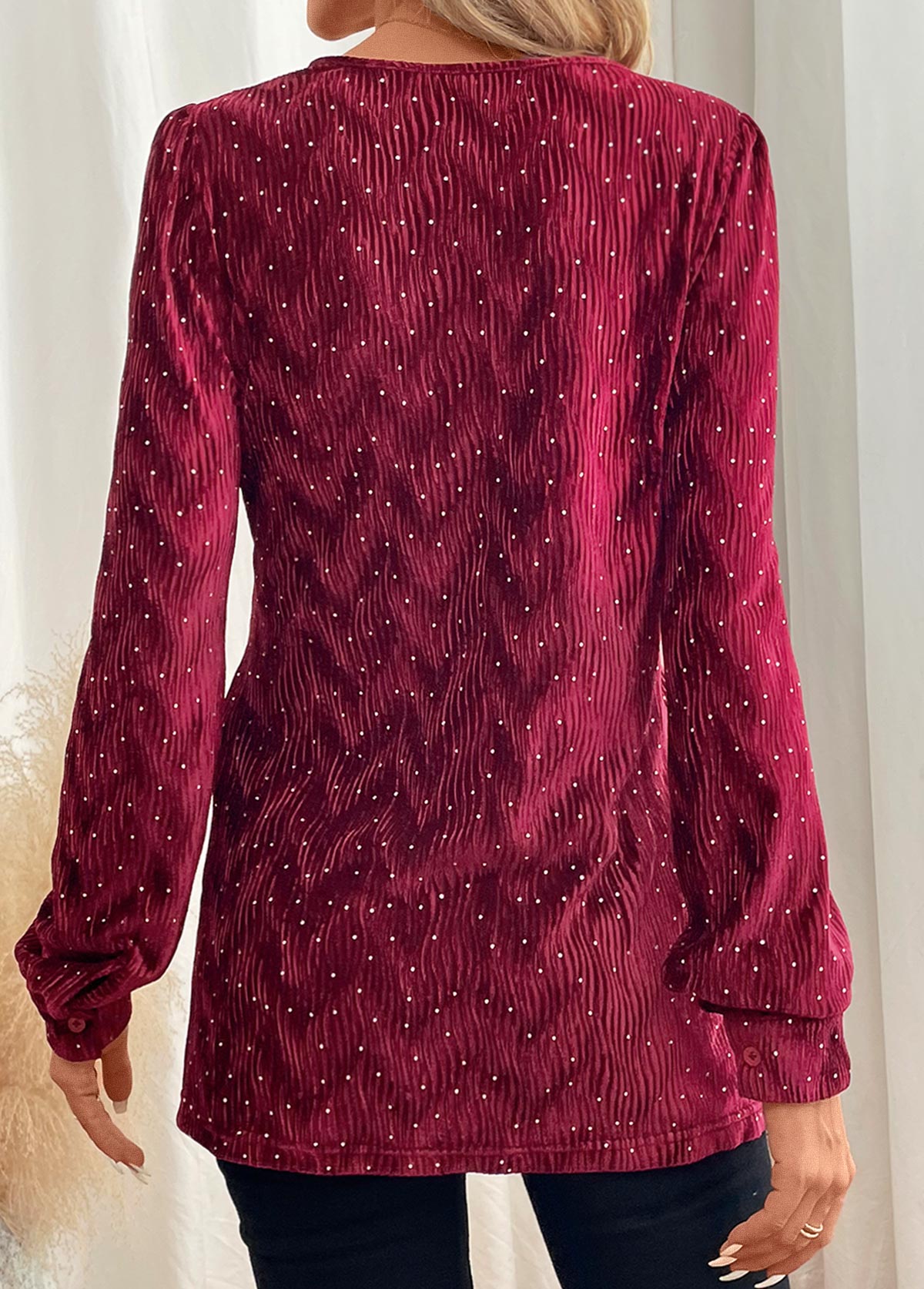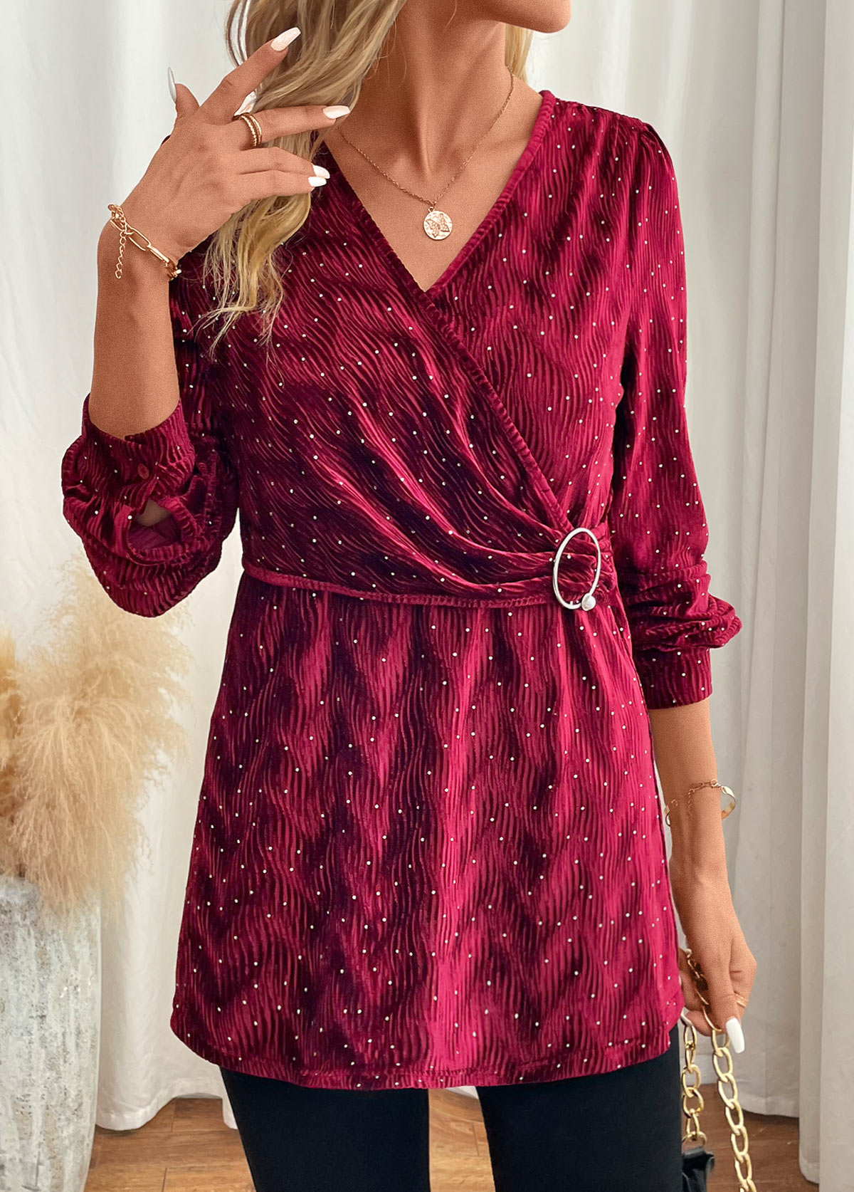 SALE Velvet Wine Red Long Sleeve V Neck Blouse Rosewe®