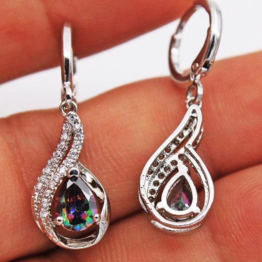 Water Drop Detail Rhinestone Silver Earrings Rosewe®