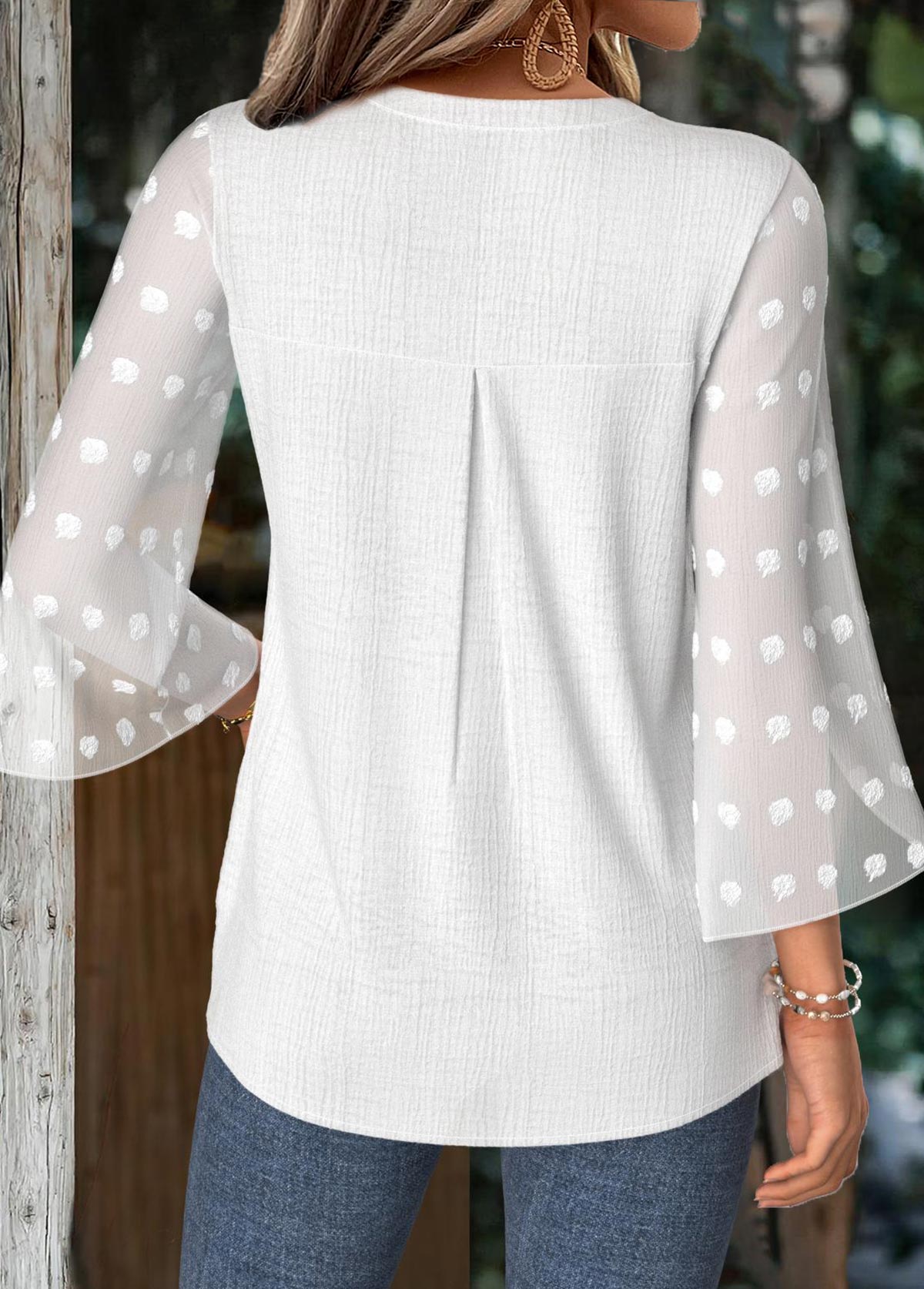 SALE White 3/4 Sleeve Split Neck Blouse Rosewe®