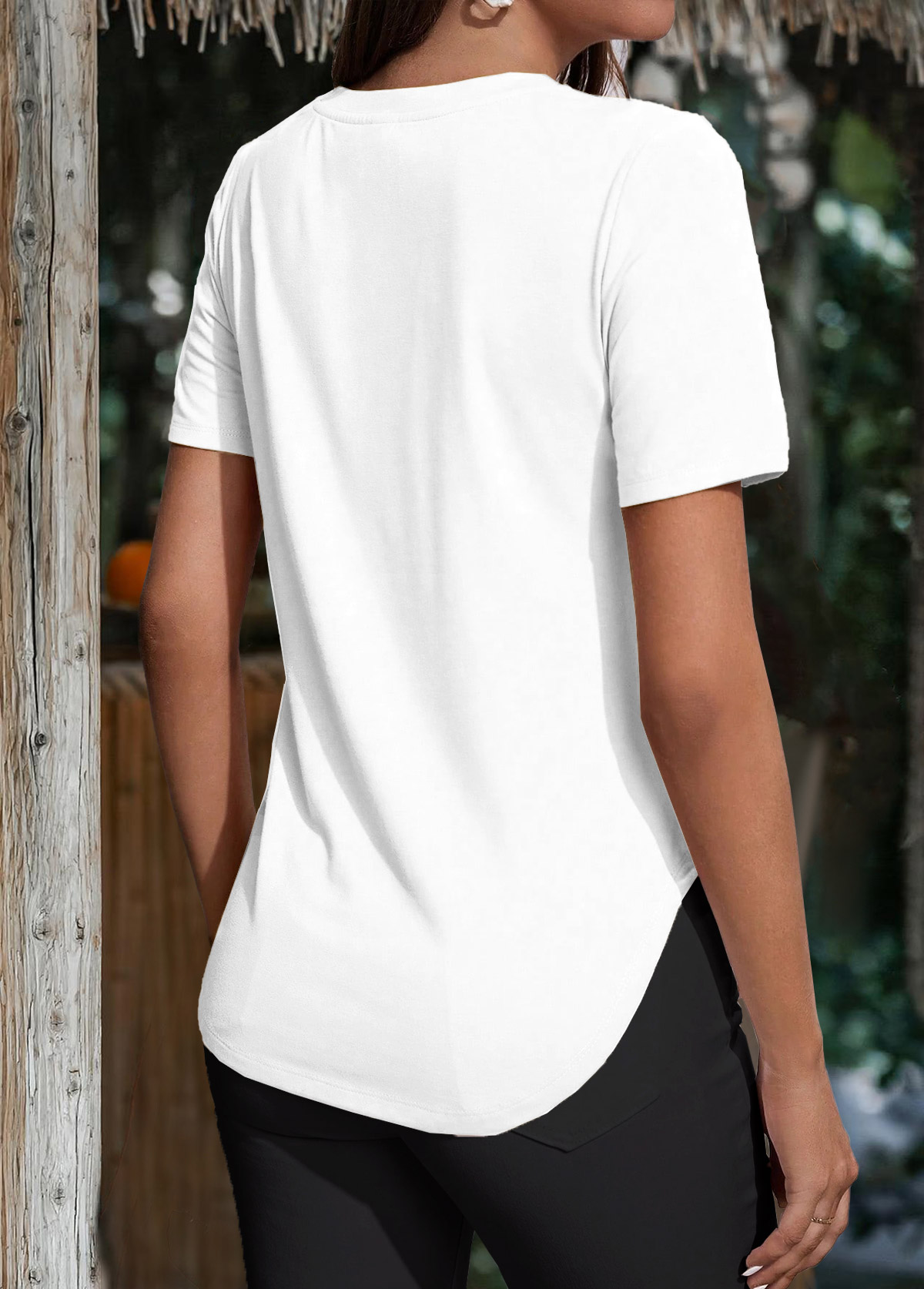 White Short Sleeve Round Neck T Shirt Rosewe®