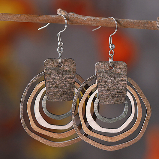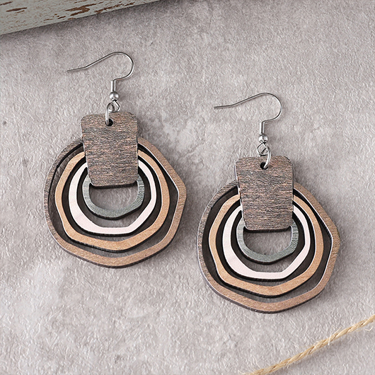Wood Detail Geometric Light Brown Earrings Rosewe®