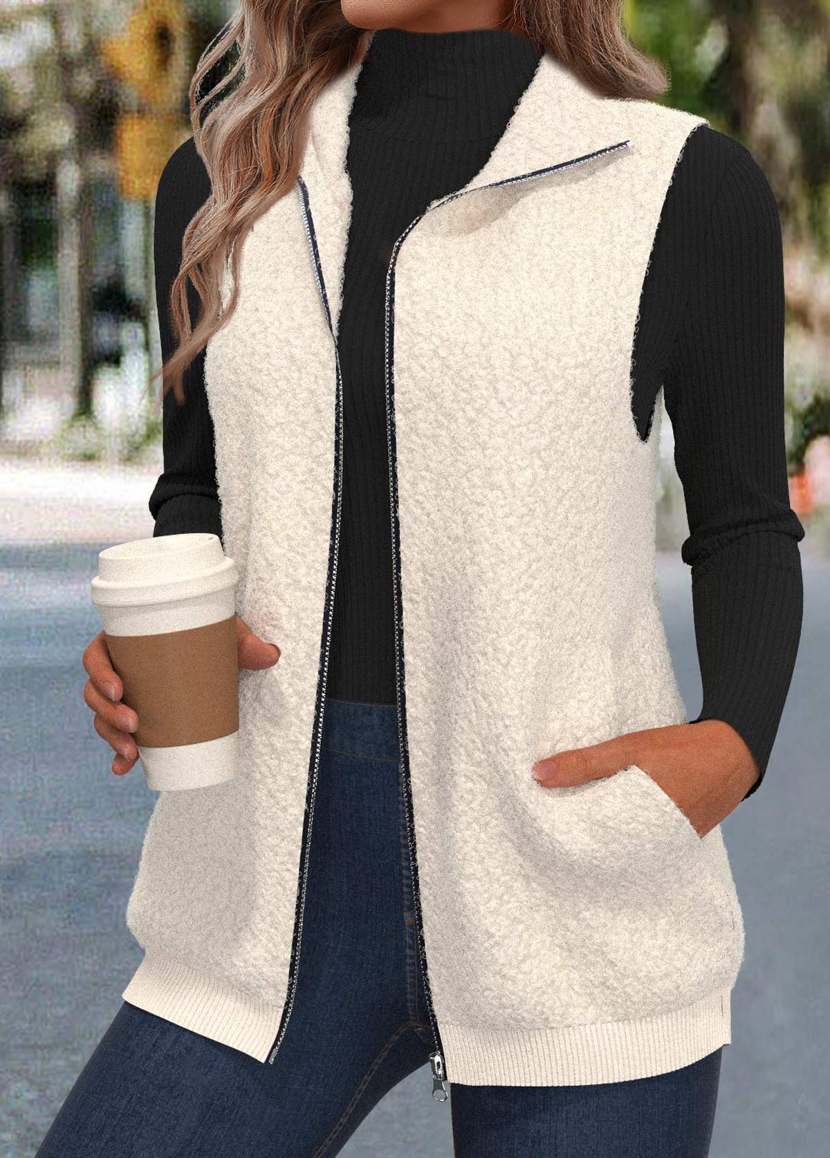 Zipper Beige Sleeveless Stand Collar Waistcoat
